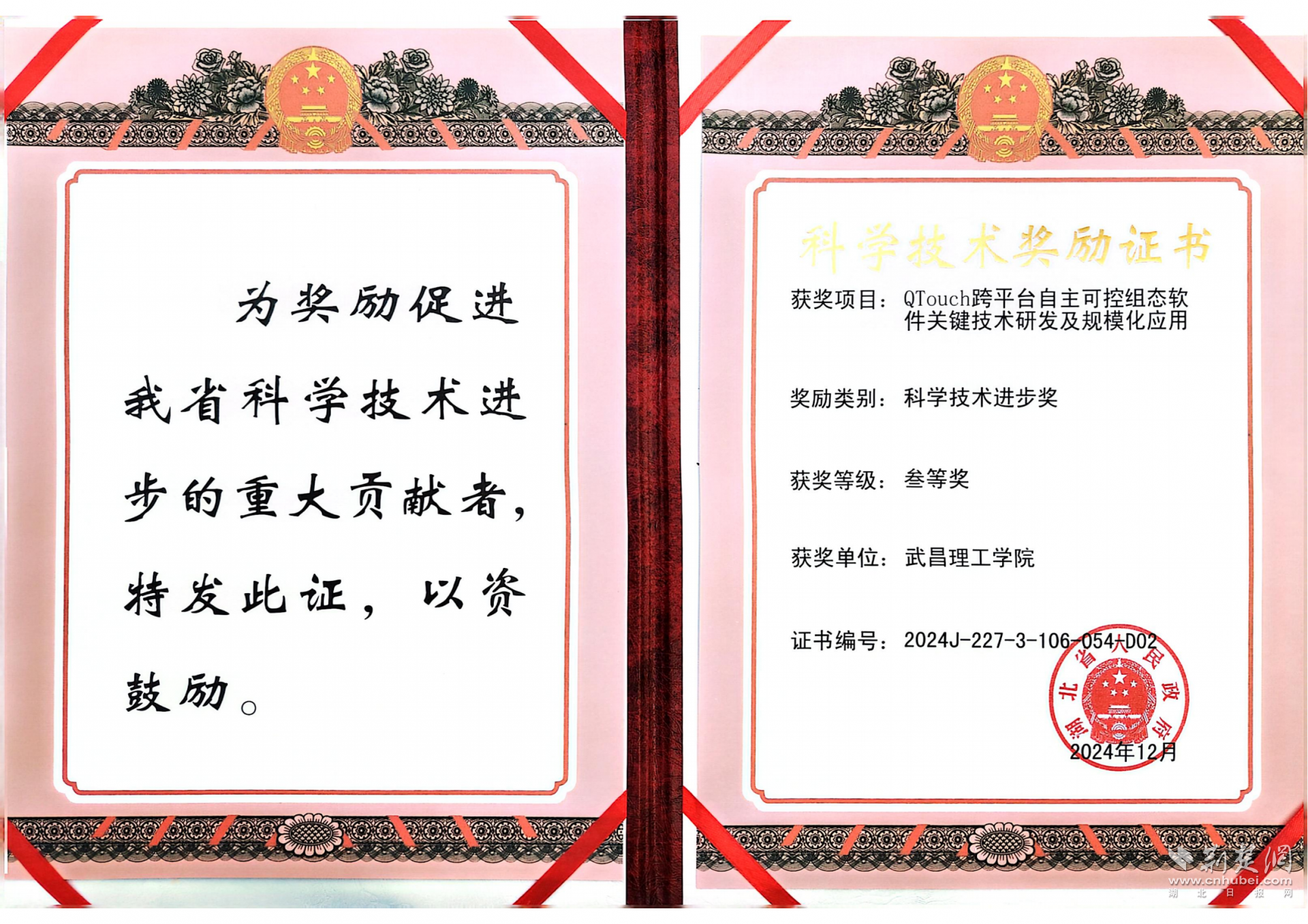 荆楚网(湖北日报网)讯(记者唐天琪 通讯员周黎)近日,记者从武昌理工学院获悉,该校安庆教授主持的项目《QTouch跨平台自主可控组态软件关键技术研发及规模化应用》荣获湖北省科技进步奖三等奖。