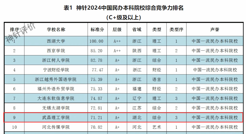 五、2024中国民办本科院校综合竞争力排名 武昌理工学院位居湖北第一