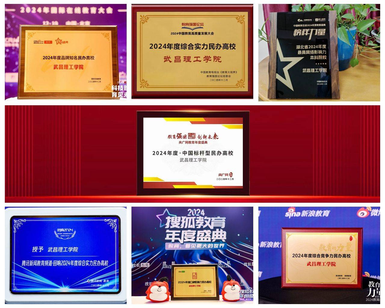 2024年底,武昌理工学院喜报频传,在七大知名权威媒体年度教育盛典中屡获大奖,接连荣获:腾讯网“2024年度综合实力民办高校”第一名,新浪网“2024年度综合竞争力民办高校”第一名,中央广电总台国际在线“2024年度品牌知名民办高校”第一名,央广网“2024 年度中国标杆型民办高校”第一名,搜狐网“2024年度口碑影响力民办高校”第一名,中国教育电视台“2024年度综合实力民办院校”第一名,中国教育在线“2024年度最具网络影响力本科高校”。这体现了社会各界对武昌理工学院办学实力和影响力的认可。