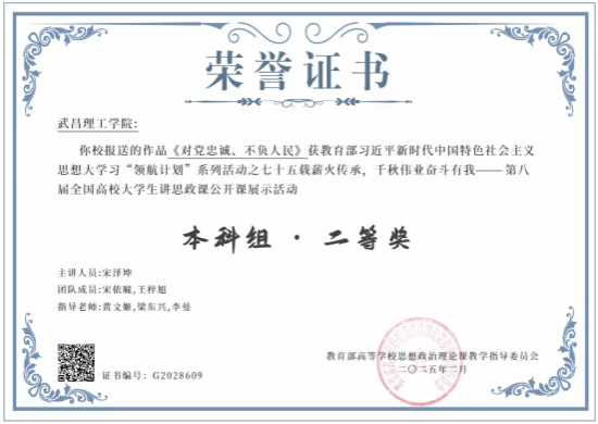 近日,由教育部高校思政课教学指导委员会主办的第八届全国高校大学生讲思政课公开课展示活动评审结果公布,武昌理工学院报送的作品《对党忠诚 不负人民》在激烈的竞争中斩获佳绩,荣获本科组全国二等奖。
