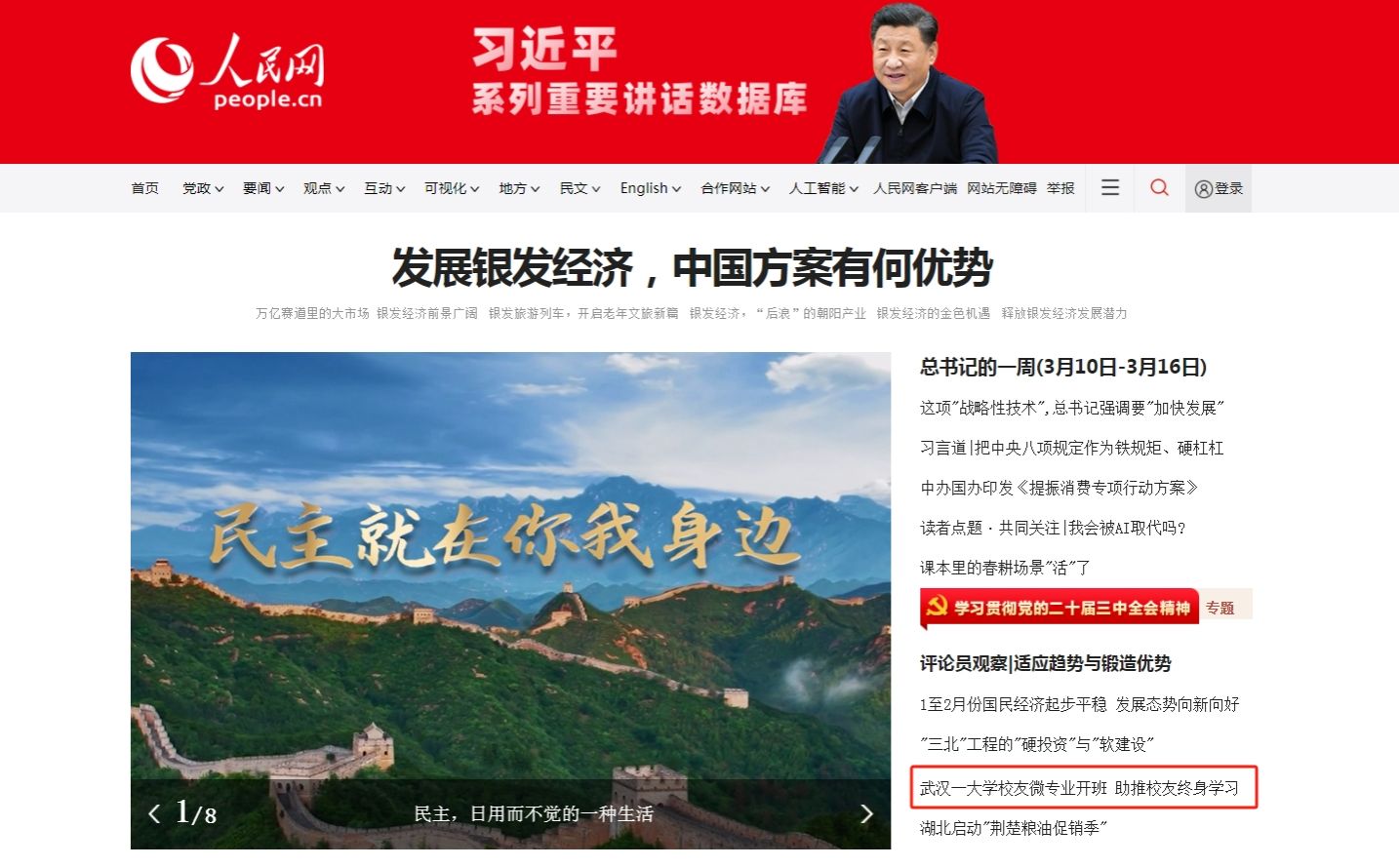 《武汉一大学校友微专业开班 助推校友终身学习》在2025年3月17日刊登上人民网首页。
