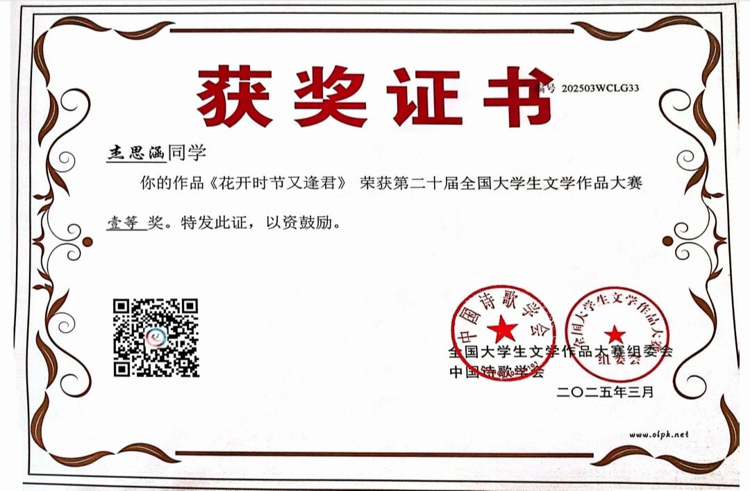 “我为这42位获奖同学感到由衷地自豪。他们的成绩不仅体现了个人文学创作的才华,更是文法学院长期以来注重人文素养培养、鼓励创新实践的成果。”文法学院团委书记汪慧蓉在接受采访时表示,“文学创作需要热情,更需要良好的土壤。我们会继续营造开放、包容的创作环境,让更多学生敢于表达、勇于突破,在文学道路上走得更远,为培养更多优秀的文学人才而不懈努力。”(袁婷)