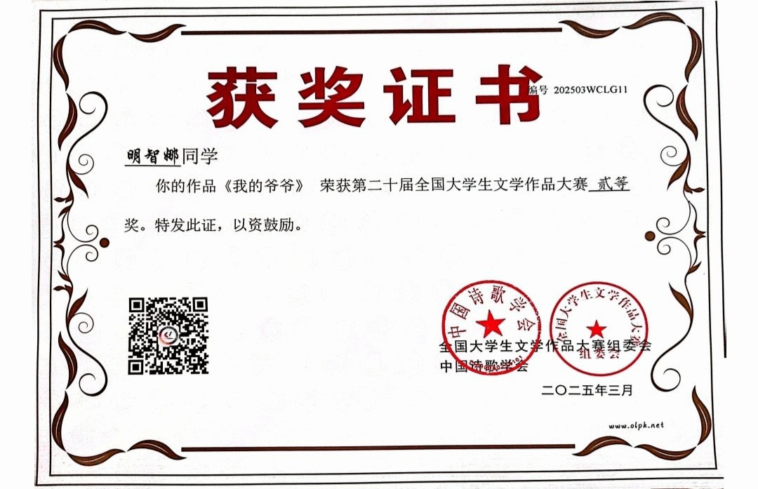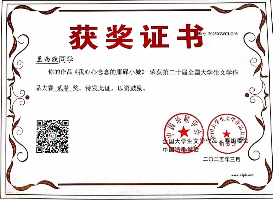 全国大学生文学作品大赛是由国家一级学会指导、湖北省散文学会承办的一项面向全国高校的国家级文学赛事。所有的来稿,均由省级以上作家、中文系教授亲自审阅,确保奖项的权威性。