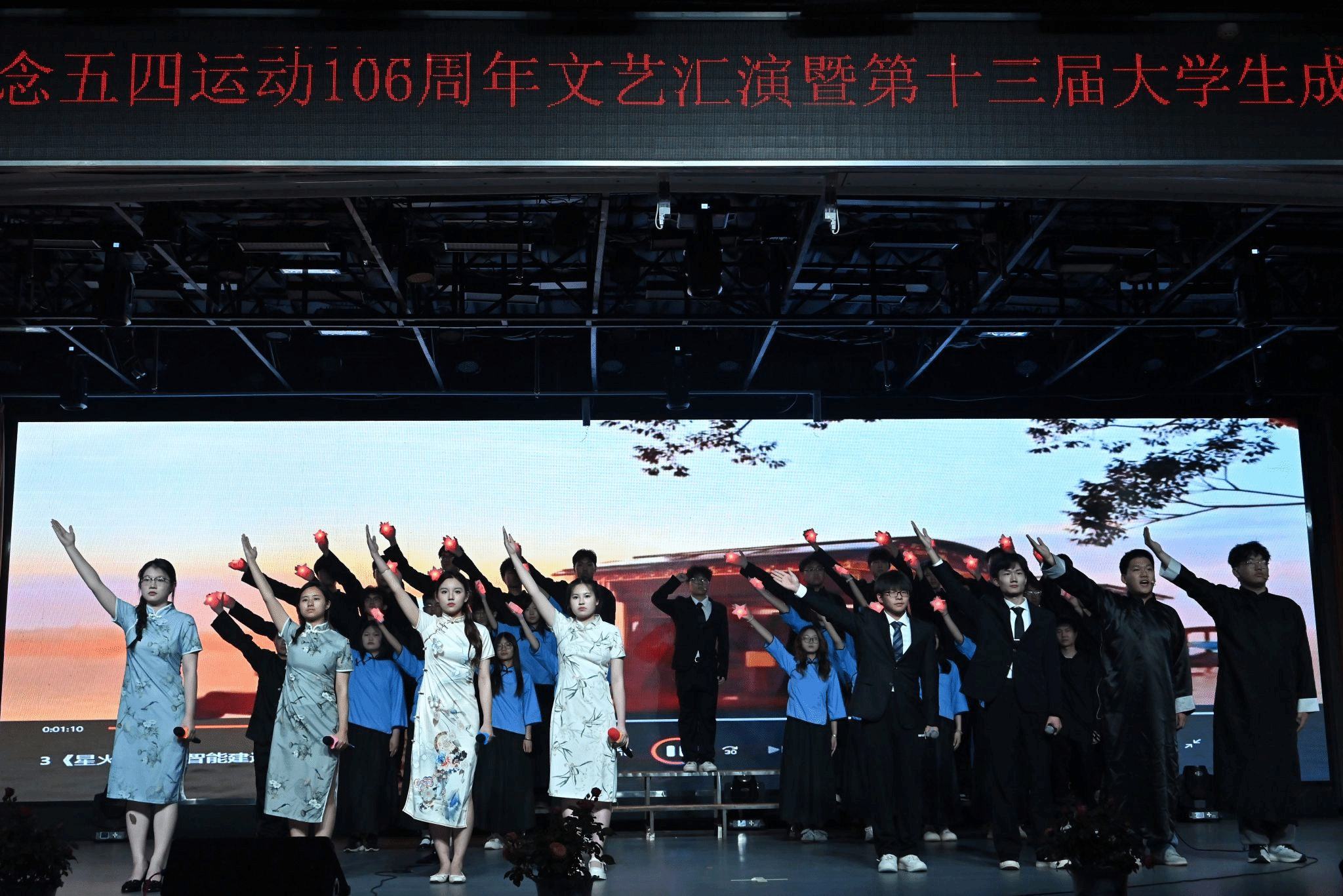 文艺汇演通过音乐、舞蹈、朗诵、情景剧等形式,生动展现了五四精神的内涵。在“初心如炬,岁月长歌”篇章中,影视传媒学院的话剧《江姐·赤旗永生》生动再现了江姐的革命精神;智能建造学院的朗诵《星火燎原》则展现了革命先辈的奋斗历程。在“青春跃动,梦响新章”篇章中,人工智能学院的《无名的人》唱出了平凡奋斗者的心声;健康与护理学院的舞蹈《美丽中国》展现了祖国的壮美山河;大学生艺术团的情景朗诵《青春永不落 玉盘代代传》和文法学院的舞蹈《等你的回答》诠释了新时代青年的理想追求。晚会在《明天会更好》的歌声中结束,寄托着全体师生对未来的信心与期待。