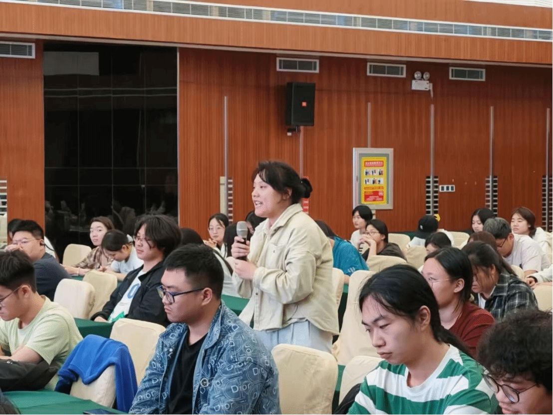 在互动环节,同学提出关于钙钛矿氧化物催化剂制备方法的专业问题,朱君江教授凭借深厚的学术造诣,为同学进行了解答。面对药品经营与管理专业龙紫艳询问在该研究过程中是否遇到过困难,朱君江教授坦言,由于这是一个新兴领域,确实面临着诸多挑战,但只要勇于尝试、坚持不懈,就能在这个领域取得成果。
