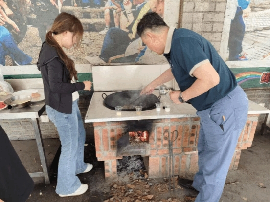 在众多劳动实践项目中,土锅灶做饭深受学生们喜爱。学生们围在土灶旁,亲手生火、添柴,学习如何控制火候。有人负责洗菜切菜,有人专注掌勺翻炒,大家分工明确,配合默契,忙得不亦乐乎。虽然灶台边烟熏火燎,但同学们的热情丝毫不减。动画专业2401班的蔡子龙表示:“第一次用土锅灶做饭,感觉特别有意思。虽然比平时用电磁炉麻烦,但做出的饭菜格外香,这种体验太独特了!”