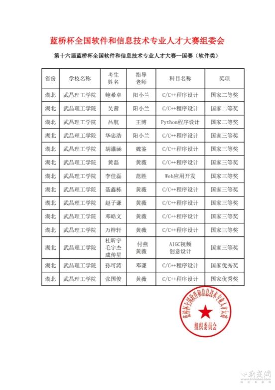 蓝桥杯大赛由工业和信息化部人才交流中心主办,已连续多年入选中国高等教育学会“全国普通高校学科竞赛排行榜”,是高校教育教学改革和创新人才培养的重要竞赛平台。此次佳绩充分展现了武昌理工学院人工智能学院在人才培养和学科竞赛方面取得的突出成效。