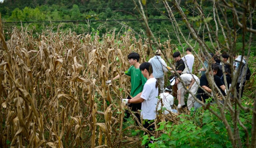 “听说要下田掰玉米,大家都很兴奋,早早就订好了闹钟!”随着教官一声令下,同学们迅速分组领取工具,投入劳动。“左手扶稳玉米秆,右手握住玉米棒,向下用力一掰再轻轻一拧,就能完整摘下来!”在当地村民的示范下,大家很快掌握了技巧,田间响起此起彼伏的“沙沙”声。“虽然累,但看着金灿灿的玉米堆,成就感满满!”学生江林笑着说。