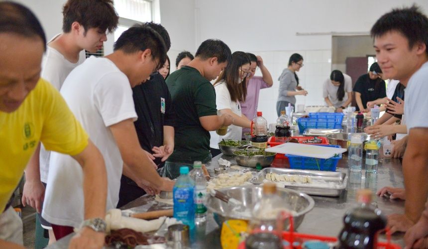 除了农事体验,基地还开设了采摘果蔬、面点制作、“我的厨房”等生活技能课程。学生们亲手剁陷、揉面、擀皮、包饺子,在炊烟袅袅中学习自理与协作。“以前在家连面条都煮不好,现在居然能独立包出一盘饺子!”护理学专业学生单梓宸自豪地展示着自己的成果。