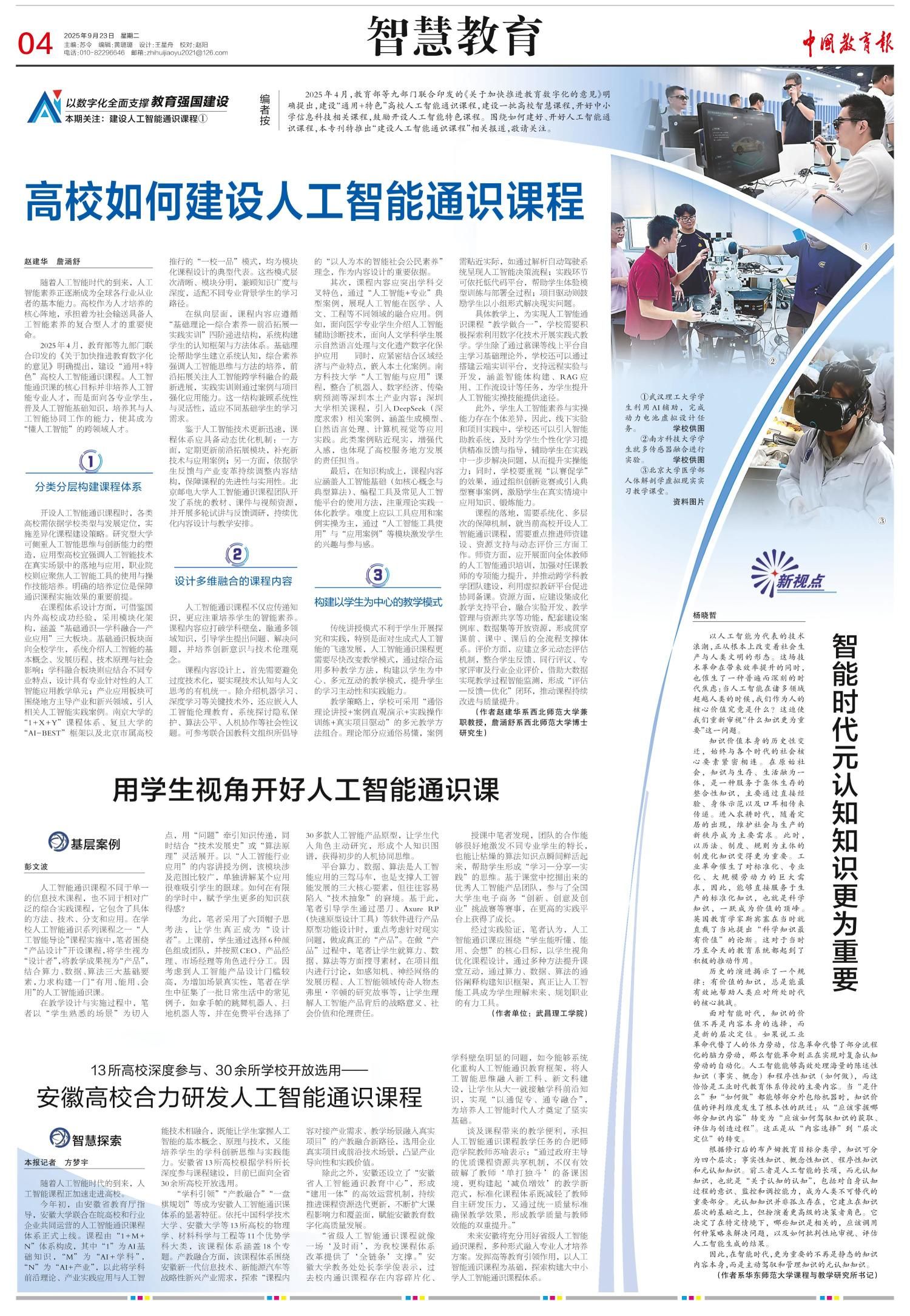 经过实践验证,笔者认为,人工智能通识课应围绕“学生能听懂、能用、会想”的核心目标,以学生视角优化课程设计,通过多种方法提升课堂互动,通过算力、数据、算法的通俗阐释构建知识框架,真正让人工智能工具成为学生理解未来、规划职业的有力工具。