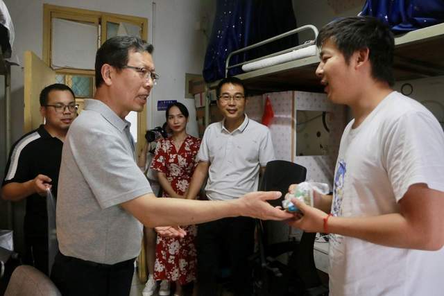 同学们收到学校领导送来的端午节礼物,纷纷欣喜不已。“寝室生活还适应吗?”、“期末考试复习准备得怎么样啦?”、“要少熬夜多锻炼,按时吃饭。”在走访中,校领导与同学们亲切交流,认真倾听学生们的心声,全面细心地了解同学们在生活上、心理上、学习上的情况,为他们送去来自学校的关心与关怀。