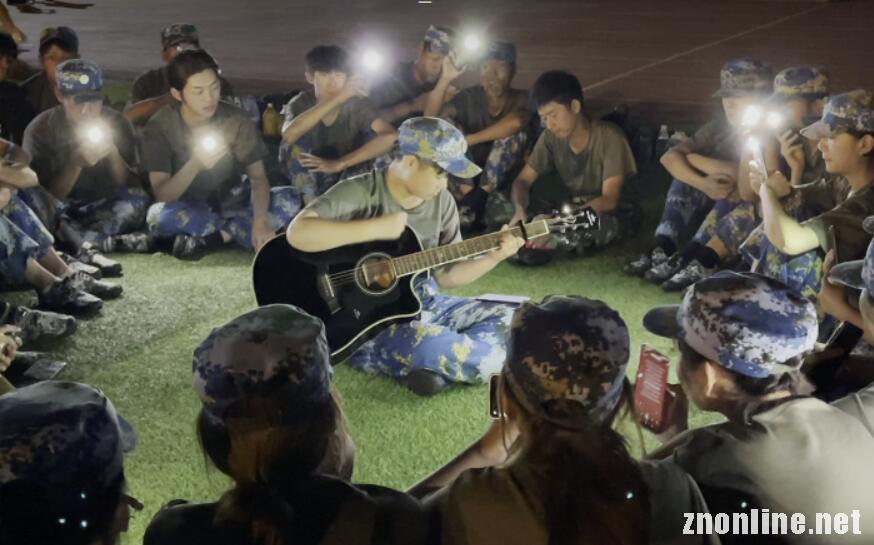 “拉歌开始!”随着教官一声令下,各个方阵迅速的找准自己的位置,盘腿而坐。“要你唱,你就唱,扭扭捏捏不像样”、“东风吹,战鼓擂,要拉歌谁怕谁”等拉歌口号让军训新生活跃躁动起来。在教官们的带领下,同学们情绪高涨,你方唱罢我登场,此声未落彼声又起,瞬间将训练场渲染得热火朝天。同学们个个都热情昂扬,晚会现场气氛很快就被推到了高潮。艺术设计学院的各个方阵昂首挺胸,目不斜视,毫不示弱,《我和我的祖国》、《强军战歌》......一首首红色歌曲响彻操场,尽显艺术设计学院新生风貌。新生们在拉歌的过程中感受到了团结的力量,军训中的乐趣。在个人才艺表演环节,军训新生表现非常出色。有跳街舞的、有独唱、有合唱表演,操场上所有人用手机打开手电筒,营造星光璀璨的氛围。最后数媒2101班王怡欣弹吉他深情演奏《如此生活三十年》让整个晚会沸腾起来,同学们在惊叹王欣怡的才艺之外,结合歌曲不免激发起了中秋月圆之夜对家的思念。