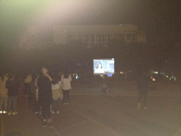 中南在线4月12日消息(大通社见习记者 白雪花 报道)4月10日晚,武昌理工学院卓越工作室创业团队在学校运动场放映自拍微电影、电视剧《太阳的后裔》、社会资讯等,吸引了众多师生观看,赢得一致好评。