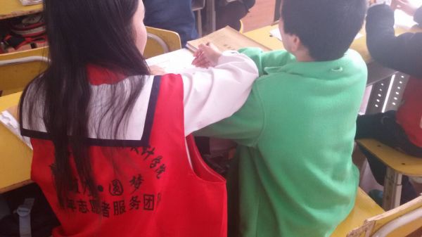 参加这次志愿服务活动的志愿者们在学校运用自己学到的Photoshop软件知识,用电脑绘制连点简笔画,打印制作成画册带去给孩子们,并在课堂上一对一、手把手帮助孩子们完成自己的画作。