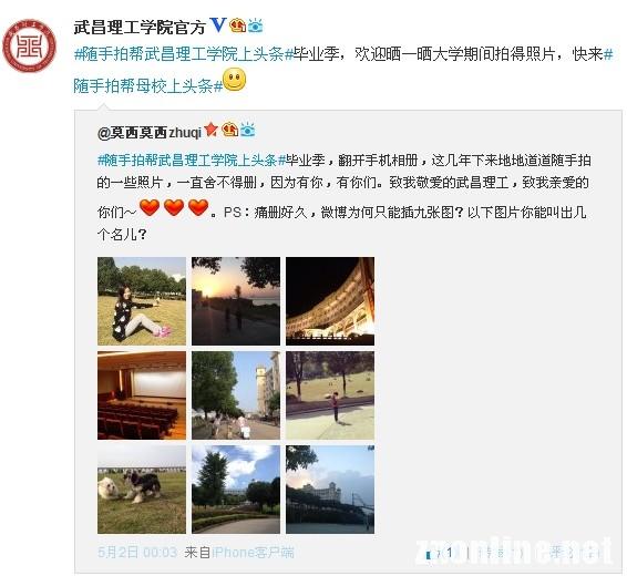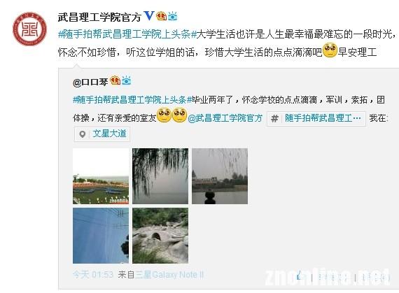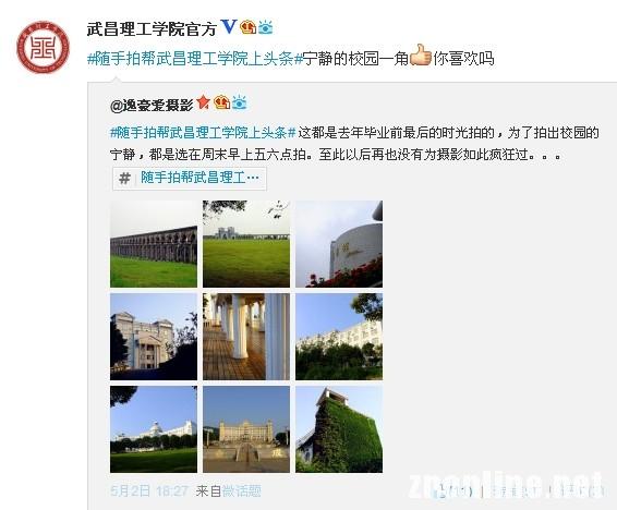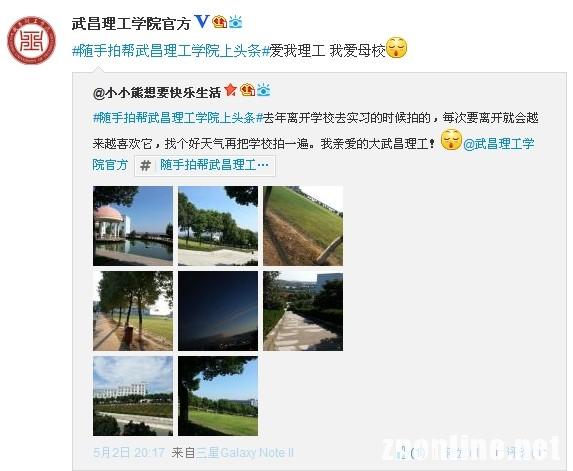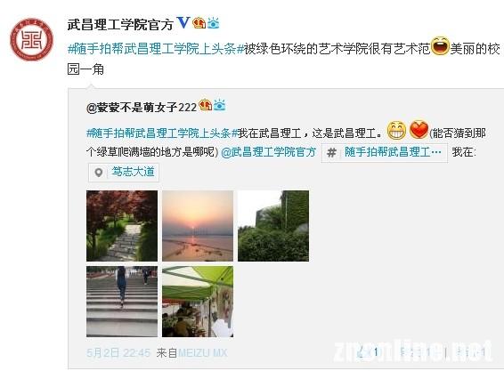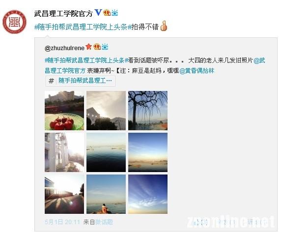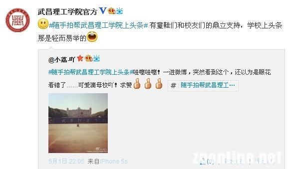 话题详见:http://weibo.com/p/100808a72bb824f1b1119a72d57678543d0157?k=%E9%9A%8F%E6%89%8B%E6%8B%8D%E5%B8%AE%E6%AD%A6%E6%98%8C%E7%90%86%E5%B7%A5%E5%AD%A6%E9%99%A2%E4%B8%8A%E5%A4%B4%E6%9D%A1&from=huati_topic