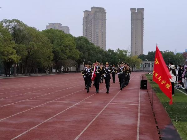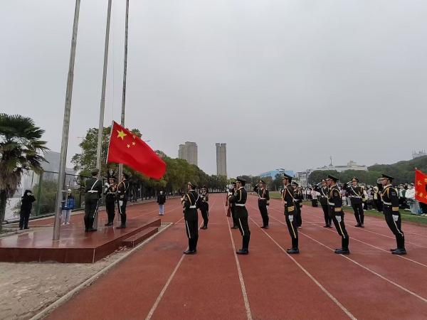 据悉,此次升旗仪式由健康与护理学院体育部长王紫怡主持,参加此次升旗仪式的人员有健康与护理学院党总支书记吴海波书记、学工党支部委员、全体素质导师、团委学生会宿管会副部级以上学生干部、全体素质导师助理和全体大一学生。尽管今天天气不好下着小雨,但同学们没有丝毫怨言,态度都十分端正。仪式第一项出旗。随着国旗护卫队铿锵的步伐,现场全体人员也都严肃了起来。在全体人员的注视下,英姿飒爽的国旗护卫队队员们完成了国旗的护送。仪式第二项升国旗奏国歌。国歌奏响,擎旗手将手中的红旗刚劲有力地甩开,伴随着庄重严肃的《义勇军进行曲》,五星红旗冉冉升起,在空中迎风飘扬。在场的每一个人都满怀着对祖国无限的热爱,崇敬地向国旗行注目礼。仪式第三项由学生代表护理学2001班的薛永昕同学在国旗下讲话。薛永昕同学的讲话饱含深情,讲话内容充满着爱国主义情怀,在宣扬爱国的同时也鼓励同学们要做好专业课程的学习,为以后做祖国的接班人,担当中华民族伟大复兴大任务做准备打基础。仪式第四项由健康与护理学院的党总支书记吴海波书记讲话。吴海波书记深切关心慰问健康与护理学院全体大一新生,感谢全体新生在前段时间里不畏辛苦,认真训练团体操和在运动会开幕式中的出色表现。同时表扬了健康与护理学院全院在运动会上的精彩表现,也赞美了各个班级在运动会赛场上展现的班级凝聚力,为运动员们拉横幅,加油助威。最后吴海波书记勉励全体同学认真学习,不要浪费时间,珍惜韶华,在最美的年华里拼搏,寄予了无限的期望与祝福。仪式第五项重温入团誓词,由护理学2102班的蒋智慧同学带领全体大一新生共同宣誓,牢记团章,规范行为,好好学习。仪式第六项齐唱团歌,每名同学都跟着音乐唱起光荣的团歌——《光荣啊,中国共青团》,在歌声里同学们重温红色故事,缅怀先烈,铭记历史,展望未来,爱国主义精神更加深入人心。仪式第七项,主持人宣布第十二周升旗仪式圆满结束,同学们有序离场。