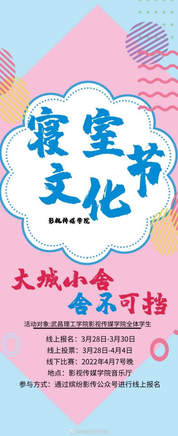 中南在线4月5日消息(大通社记者 张瑜 报道)为明亮清雅之室,树立校园同心同德之风,同时能够更好地展现丰富多彩的大学生活,体现积极向上的寝室精神,营造良好的学习环境,促进温馨宜人的寝室文化建设。武昌理工学院影视传媒学院宿舍管理委员会面向影视传媒学院全体学生举办了“寝室文化节”活动。