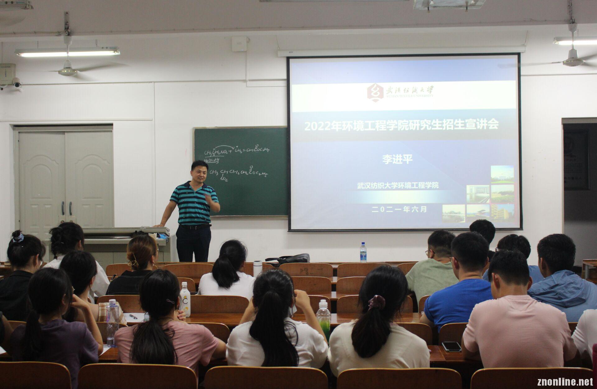 中南在线6月18日消息(大通社记者 陈飞扬 报道)“我们要培养创新应用人才”16日晚,武昌理工生命科学学院特邀武汉纺织大学教授李进平于该院503教室为有考研志向的学子开展2022年环境工程研究生招生演讲会。