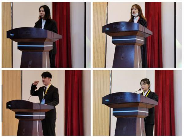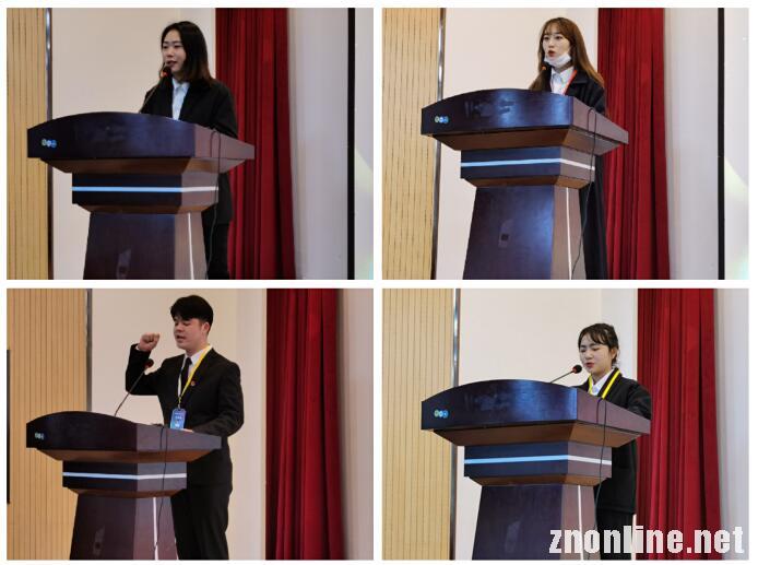大会进行第三项,学生干部发言。第十五届团委学生副书记甄艾慧学姐和第十六届团委学生副书记乔佳咪给新干事们讲述她们在团学生活的故事,希望全体学生干部始终坚持良好的学习态度,坚持严谨勤奋,求实创新的学习作风,进一步锻炼自身素质,积极求教,努力工作。第十六届团委学生干部代表信网部部长张姝涵发言,她表示:“这次换届大会是一轮责任的交接,将责任延续下去,新一届的团学组织也一定能积极努力为艺术设计学院做出新的贡献。”素质导师助理代表赵兴林表示他们将以协助素质导师,服务学生为宗旨,履行职责,成为师生沟通的桥梁。