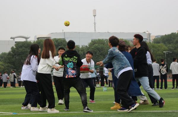 经过半小时的“热身”后,活动也逐渐进入正轨,本次活动以游戏的形式进行,趣味多样,种类丰富。击鼓传花、八仙过海、我们都是一家人……每一个活动都是经过几番深思熟虑确定下来。或培养同学的反应力,或培养团队的默契度,让每一个参与活动的同学都有所收获。教练和大家讲清楚游戏规则,保证每位同学都能够很好的参与进游戏活动中来。操场上欢声笑语就是同学们对本次活动最大的认同。男生背着女生,小组传球,排成一队穿过梅南山,大家相互配合,争取为团队争光。在游戏进行过程中,教练们细心叮嘱,暖心的一句句话都让同学们倍感关怀。在如此细心的指导老师们身上,同学们也能学到许多。新生代表姚伟同学说到:“这次活动很有意义,认识了很多新同学。同时轻松的游戏时光不仅缓解了近期新生同学面对入学教育考试的压力,同时又增强了团队协作能力,可以为我们以后的学习生活打下坚实的基础。”