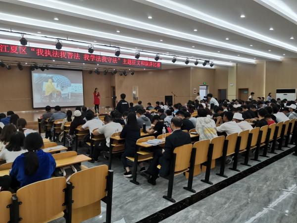 中南在线10月30日消息(大通社见习记者 陈思琦 陈嘉欣 郝艳格 报道)为进一步推进江夏区“七五”普法规划的实施,落实“谁执法谁普法,谁主管谁普法,谁服务谁普法”的普法责任制。江夏区司法局,江夏区普法办特联合武昌理工学院、涂涂艺术文化传播有限公司等单位在武昌理工商学院九楼隆重举行主题为“我执法我普法,我学法我守法”的演讲比赛。旨在让广大学生牢固树立“学法、知法、懂法、守法”的意识,且让法律走进校园,让法治深入每个学生的心中。