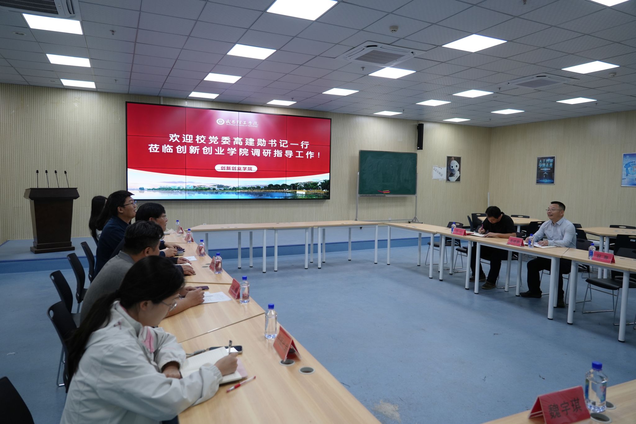 在听取汇报后,高建勋书记对创新创业学院近年来在探索“五化融通”育人模式、学生创新创业能力培养以及师资队伍建设等方面取得的显著成绩给予了充分肯定。他指出,学院的持续努力和有益探索,为学生成长成才提供了广阔的发展平台,也为社会培养了大量的创新创业人才,为提升学校社会影响力作出了积极贡献。