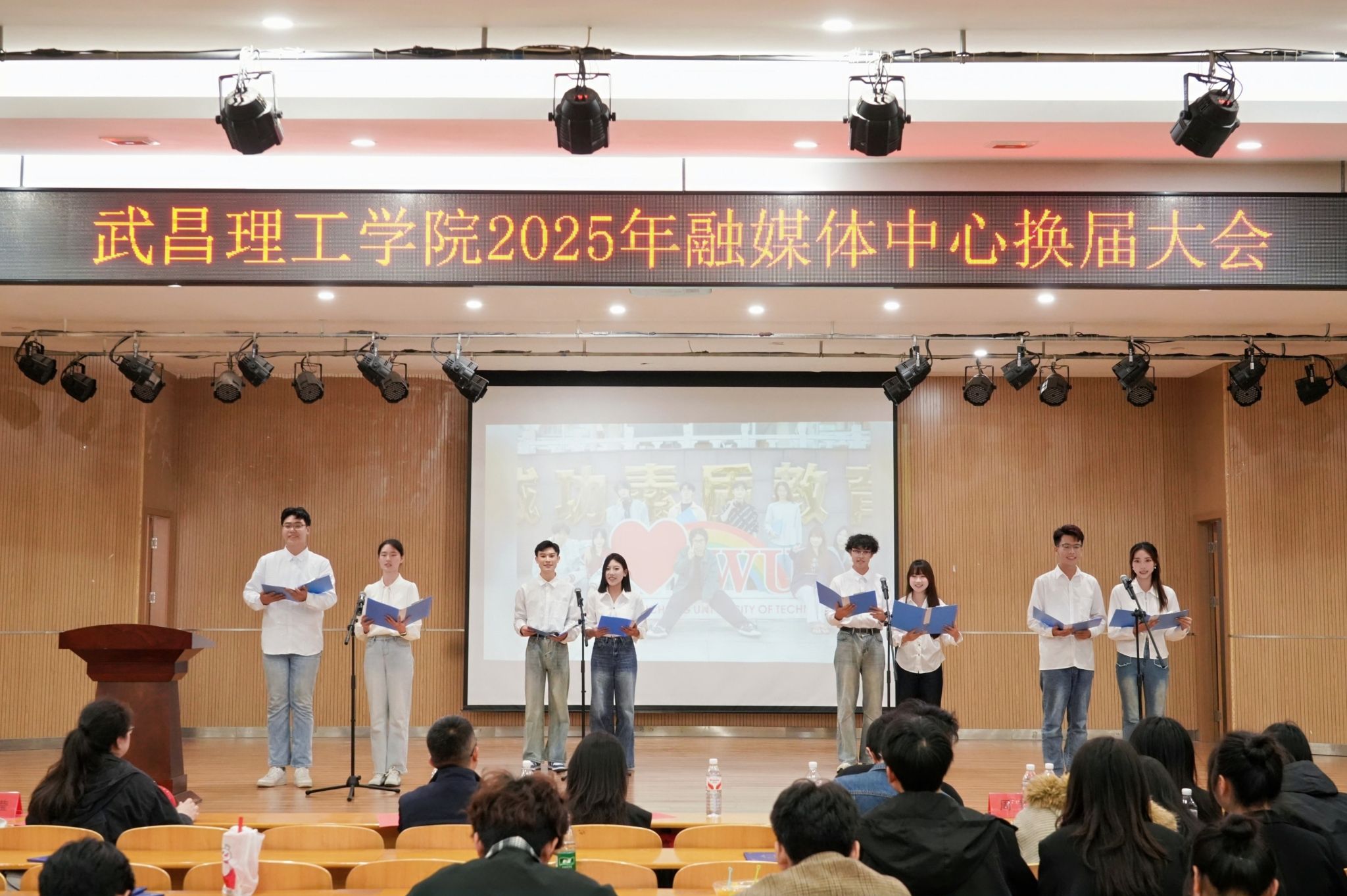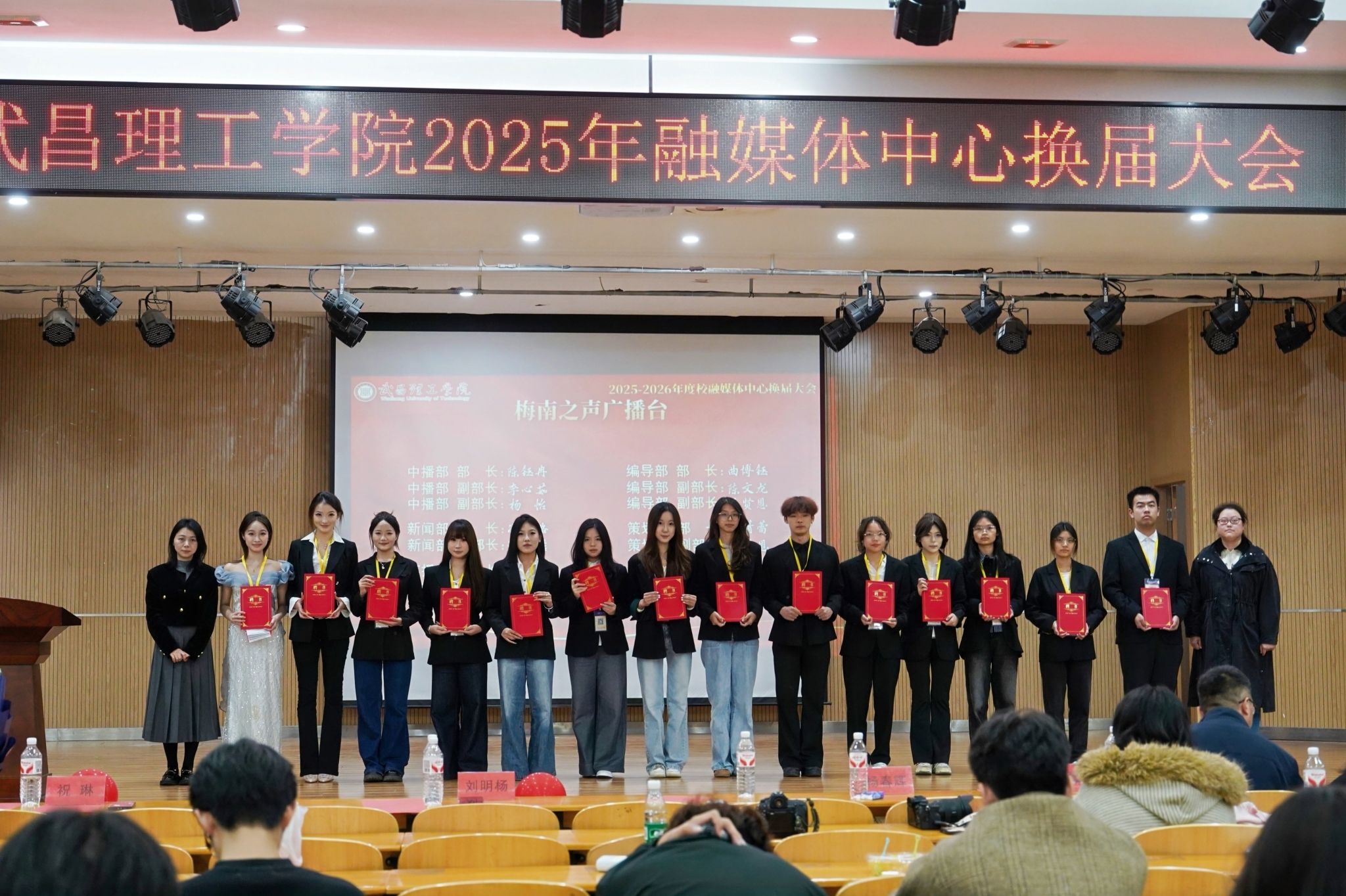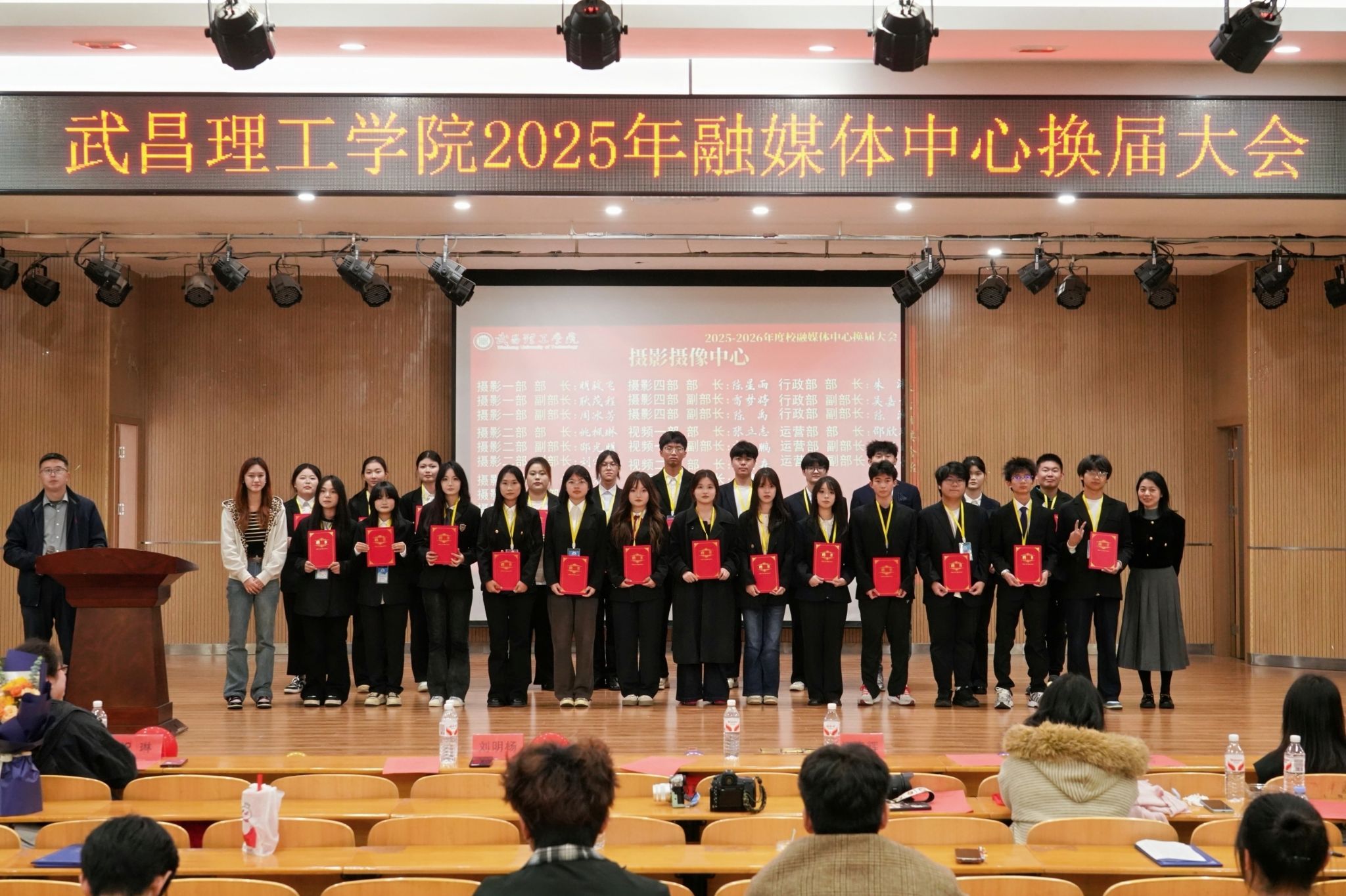 中南在线10月28日消息(记者 周黎 大通社记者 马思琪 报道 摄影摄像中心记者 摄影)10月27日,2025年武昌理工学院融媒体中心换届大会在商学院九楼报告厅举行。校党委书记高建勋教授,校党委宣传部刘明杨部长,以及大学生通讯社、新媒体中心、梅南之声广播台、摄影摄像中心各组织指导老师出席大会,融媒体中心全体成员近600人共同参与。