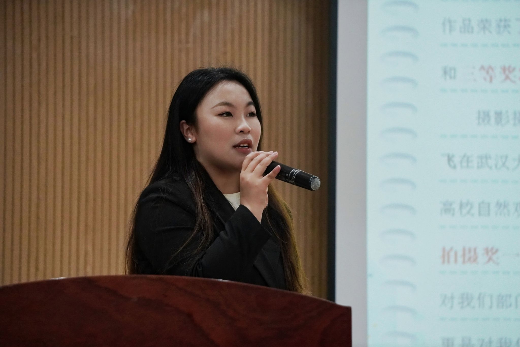把经验折叠成“锦囊”,把不舍化作祝福。大学生通讯社前任社长岳佳佳、新媒体中心前任主任林雨彤、摄影摄像中心前任主任邓馨怡、梅南之声广播台前任台长苏紫微先后登台述职,全面回顾了过去一年的工作历程与成果,并表达了对融媒体中心未来的美好期许。