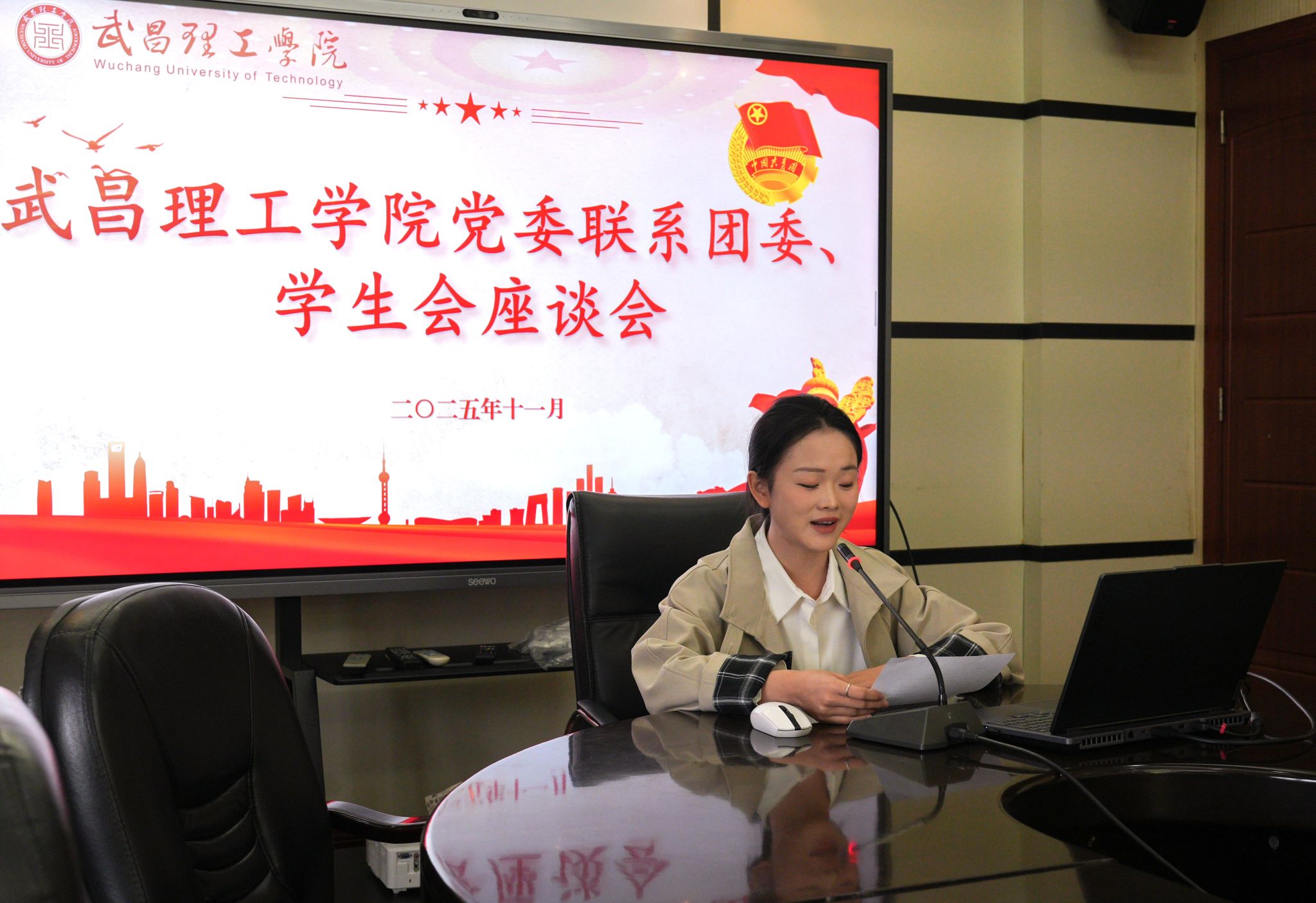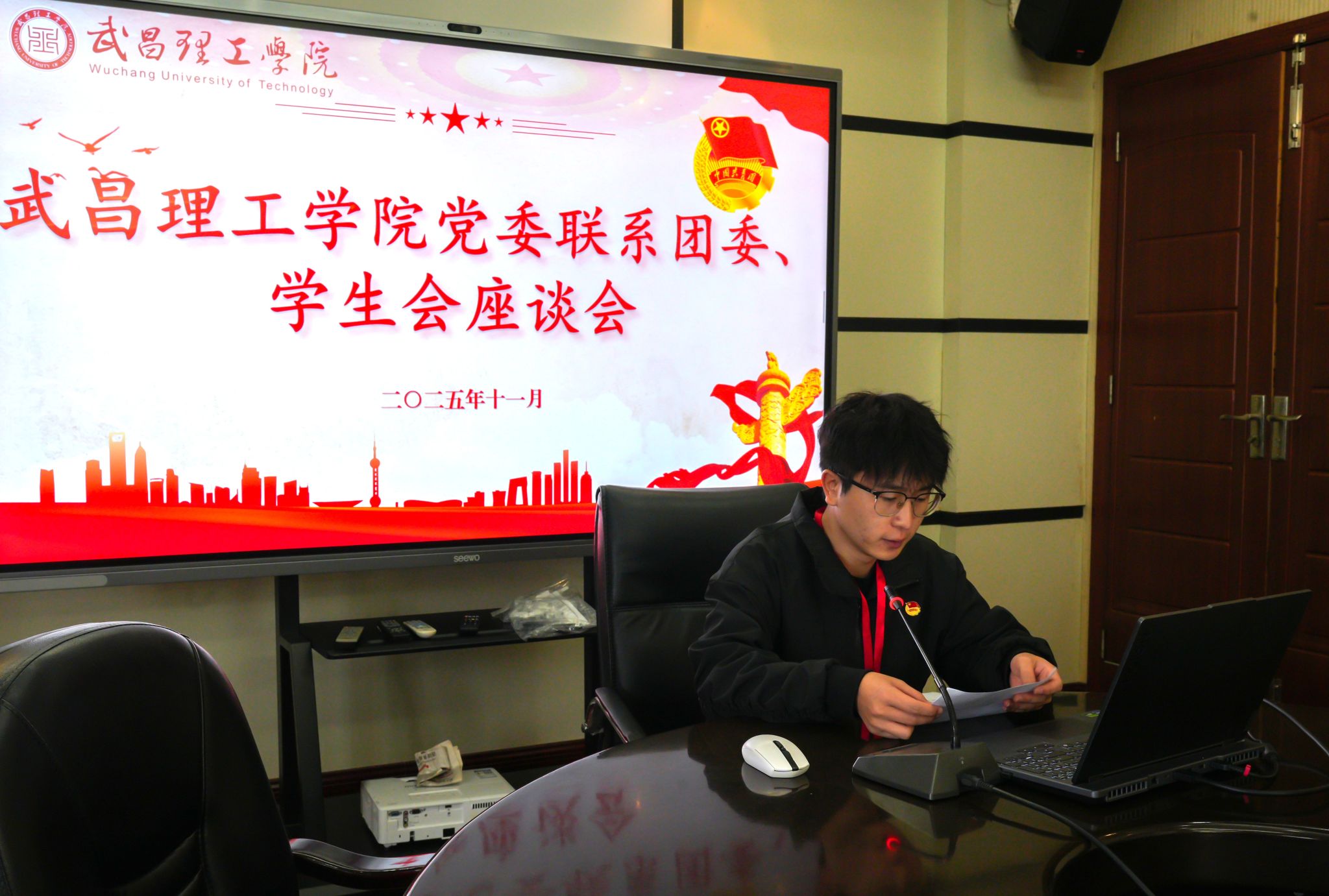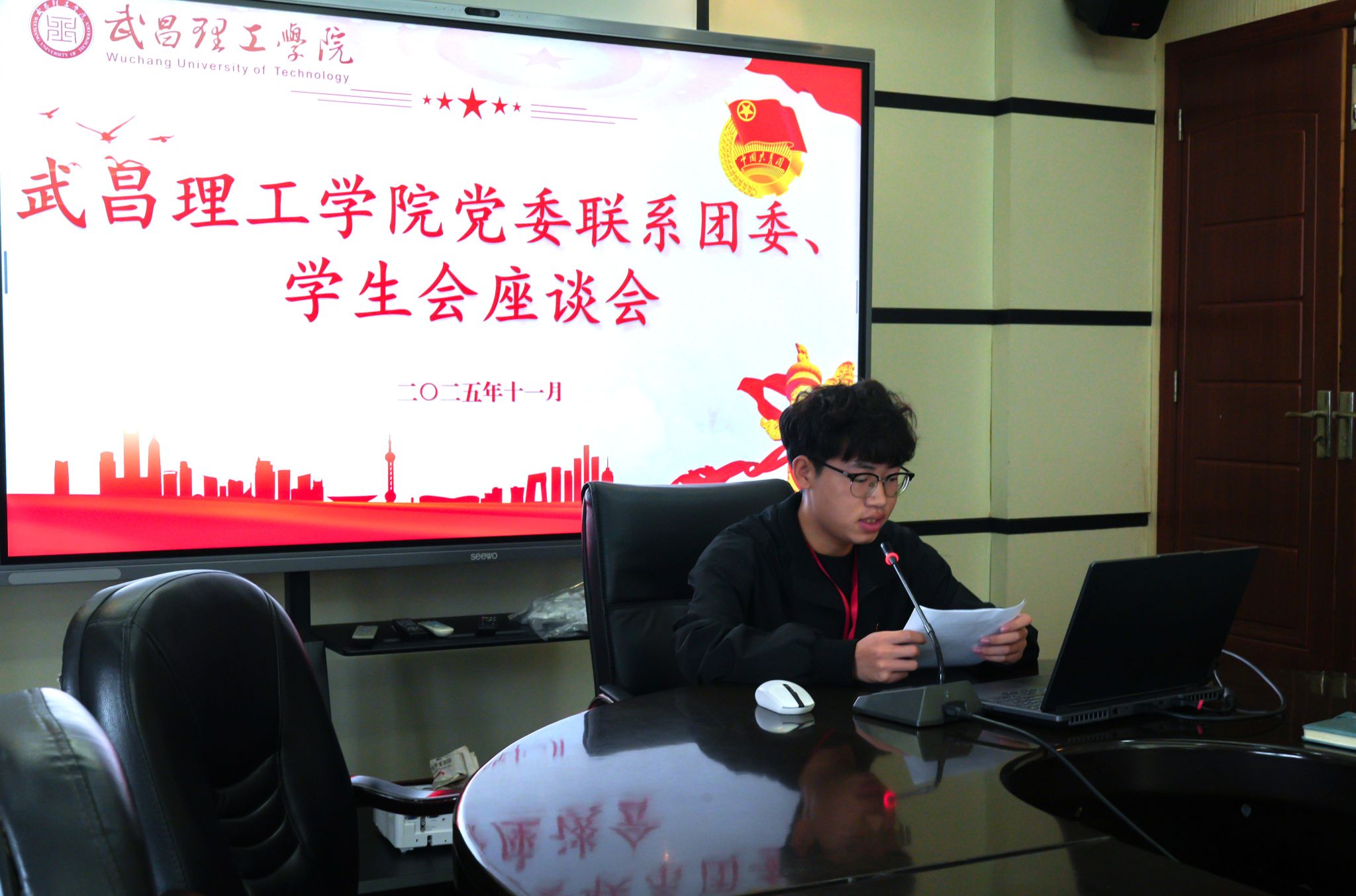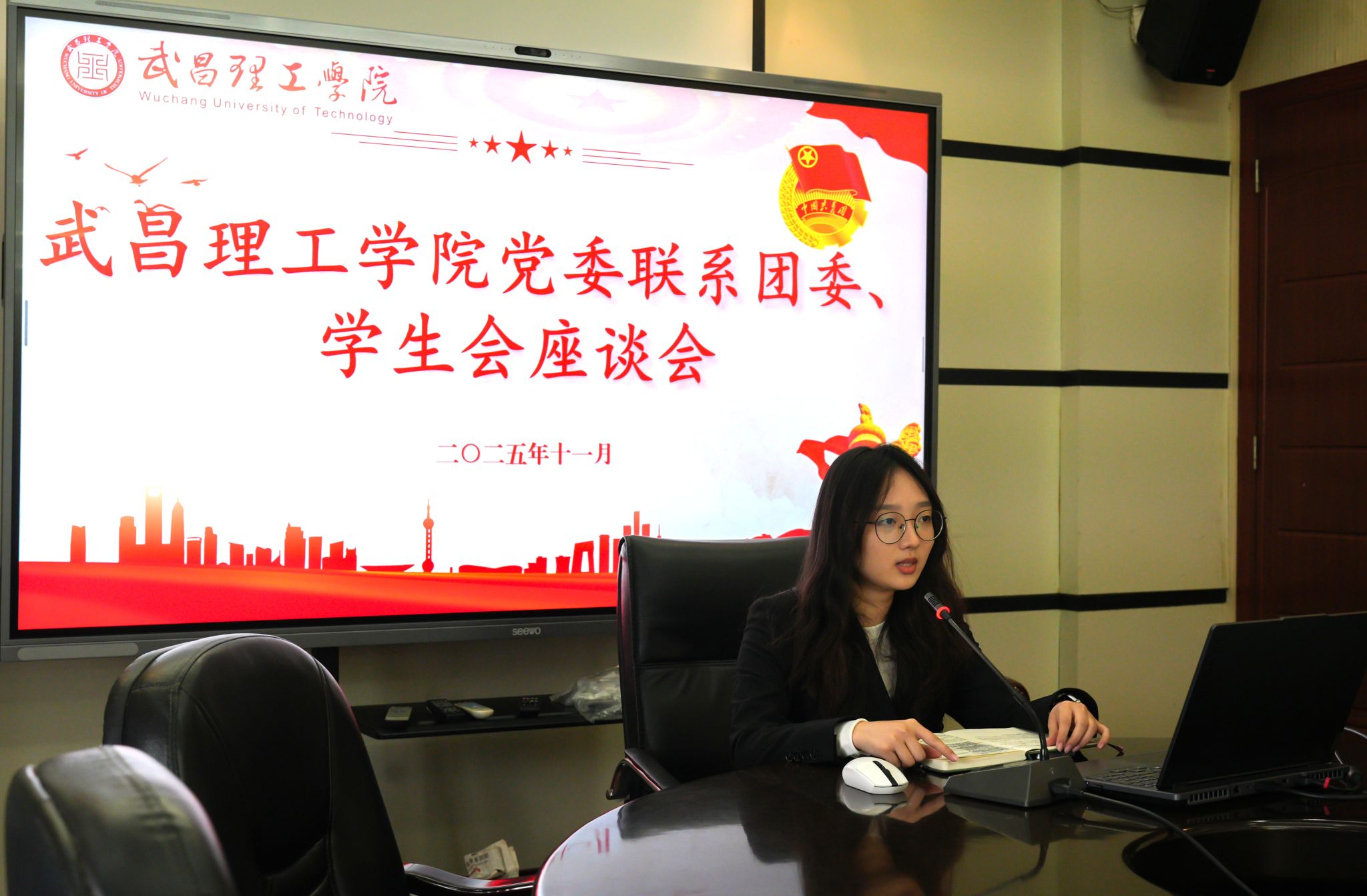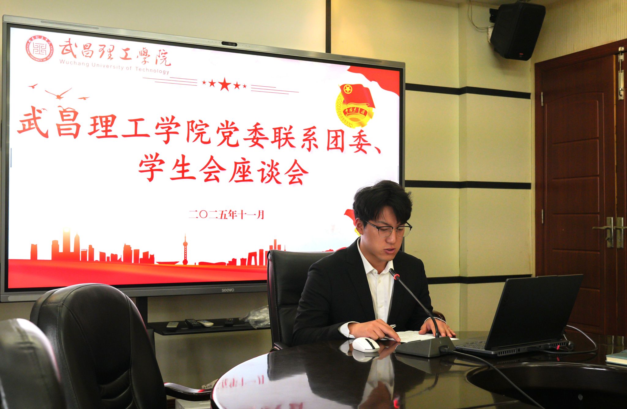 中南在线11月6日消息(记者 周黎 通讯员 邢鲍博 陈可欣 卢延杰 刘天乐 报道)11月4日下午,武昌理工学院2025年党委联系团委、学生会座谈会在行政楼612会议室举行。校党委书记高建勋,校长助理李金永,学工部、就业中心负责人,各学院团委书记,校、院两级学生会执行主席及校社团指导中心主任参会。会议由校团委副书记李玮主持。