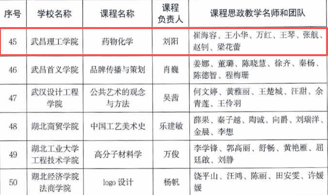 中南在线11月10日消息(记者 周黎 报道)近日,湖北省教育厅公布省级课程思政示范项目评选结果,武昌理工学院生命科学学院刘阳教授主讲的《药物化学》课程成功获评“省级课程思政示范课程”,刘阳教授及其领衔的教学团队同时被授予“省级课程思政教学名师”和“省级课程思政教学团队”荣誉称号。