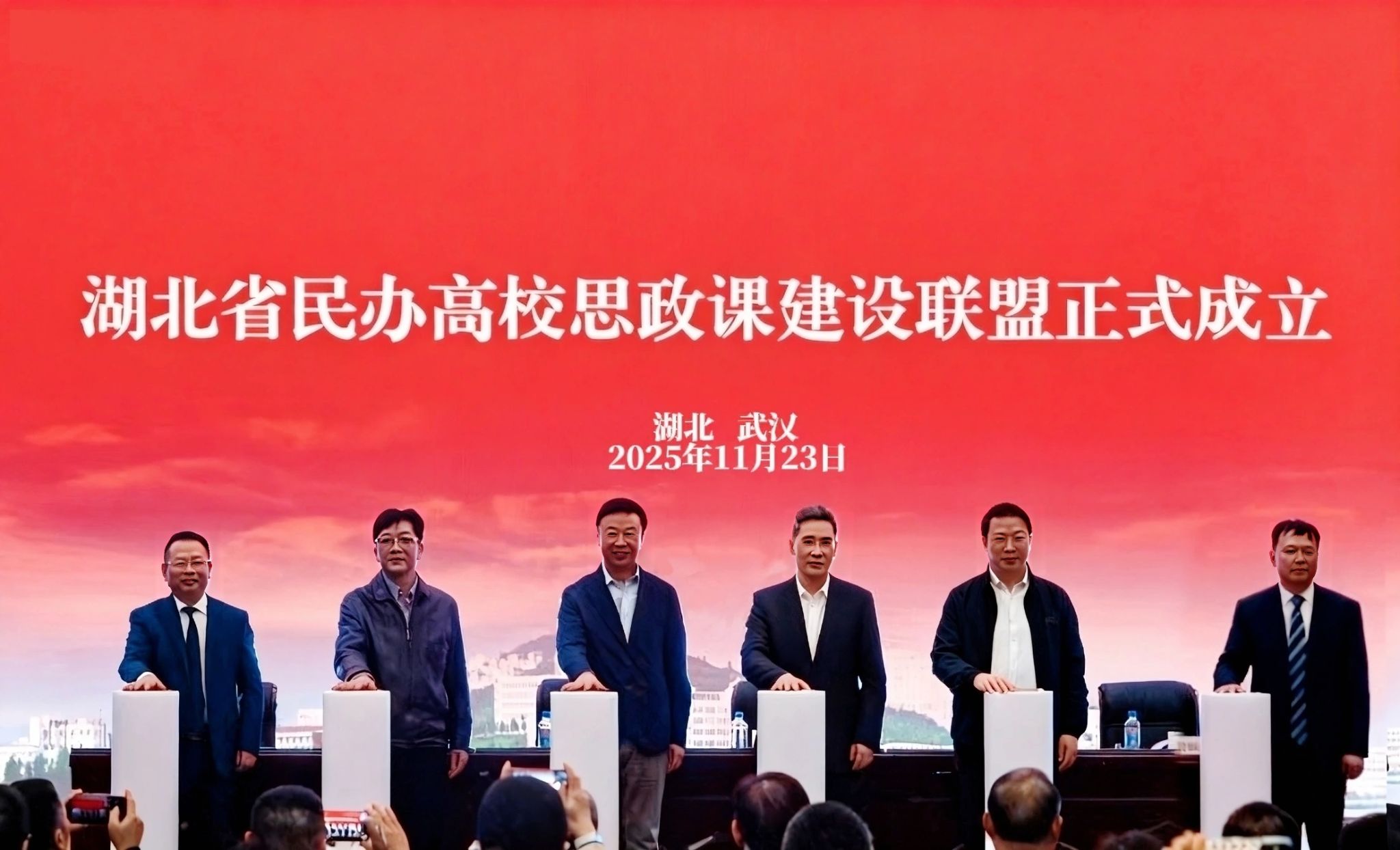中南在线11月25日消息(特约通讯员 陈瀚英 报道 摄影摄像中心 雷梦婷 摄影)2025年11月23日,湖北省民办高校思政课建设联盟成立大会暨思政课课堂教学提升研讨会在武昌理工学院成功召开。本次会议由武昌理工学院主办、武昌理工学院马克思主义学院承办,旨在贯彻落实党的二十届四中全会精神,搭建全省民办高校思政课建设交流合作平台,推动思政课高质量发展。教育部高校思政课教指委总教指委主任委员、“民办高校思政课”分教指委主任委员、全国民办高校思政课建设联盟主席杨晓慧教授,教育部高校思政课教指委总教指委主任委员、“马克思主义基本原理”分教指委主任委员、清华大学习近平新时代中国特色社会主义思想研究院院长艾四林教授,省教育厅相关领导,《学校党建与思想教育》杂志社社长谢成宇教授,华中科技大学马克思主义学院院长岳奎教授,武昌理工学院党委书记高建勋,以及全省43所民办高校思政课负责人齐聚一堂,共襄盛举。
