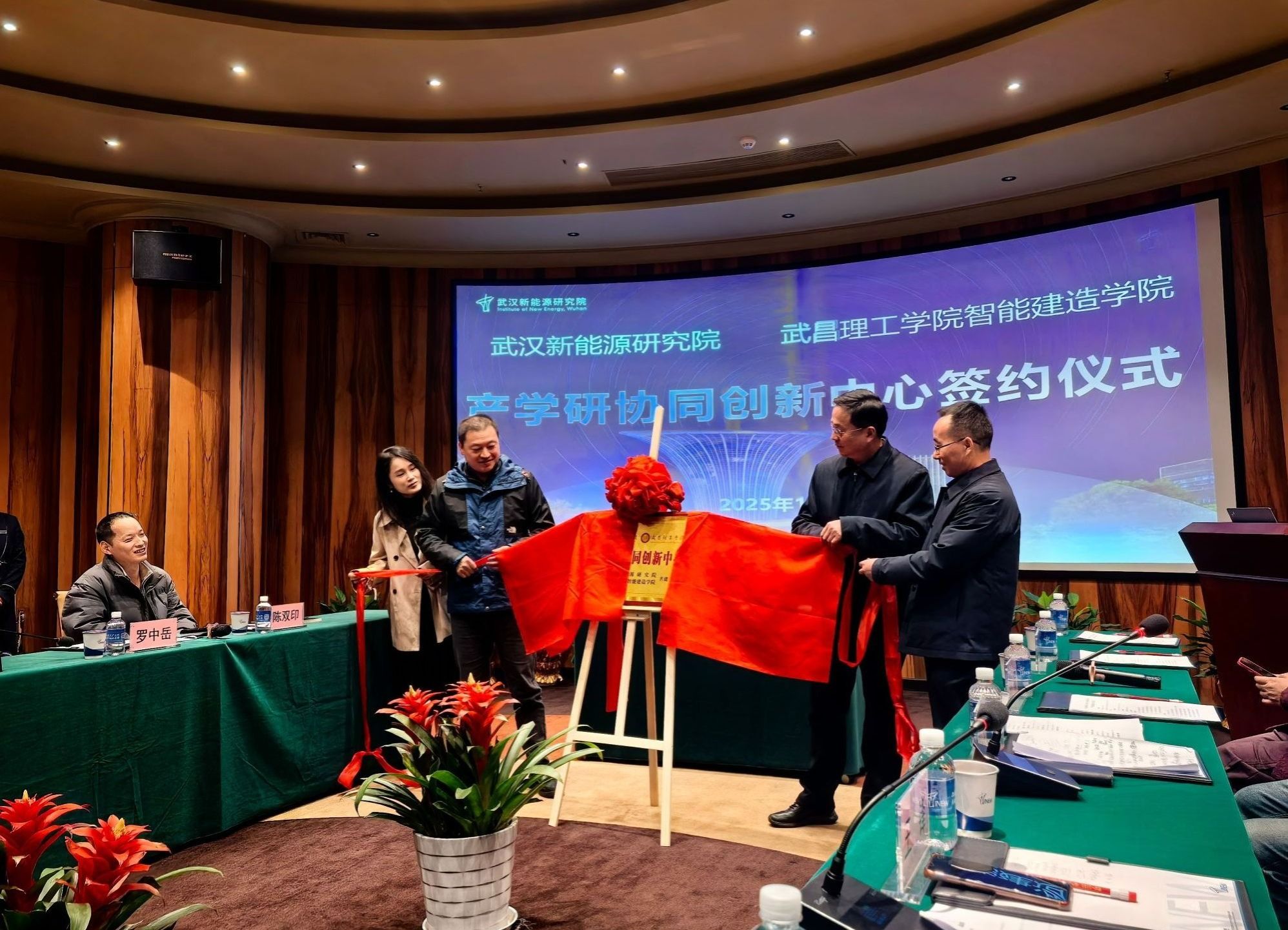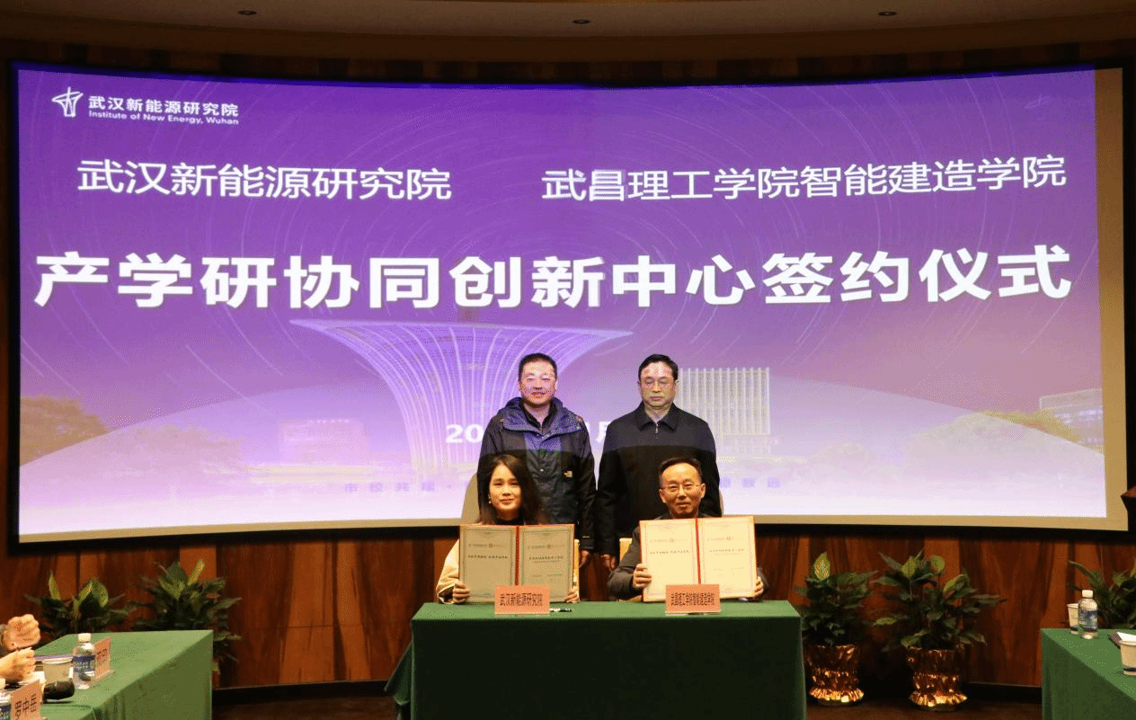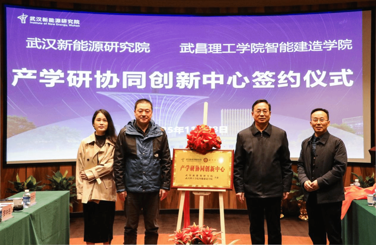 签约仪式上,武昌理工学院智能建造学院院长柳立生与武汉新能源研究院财务总监阮佩婷作为双方代表签署协议。武昌理工学院校长助理王锋与武汉新能源研究院院长杨凯共同为“产学研协同创新中心”揭牌。