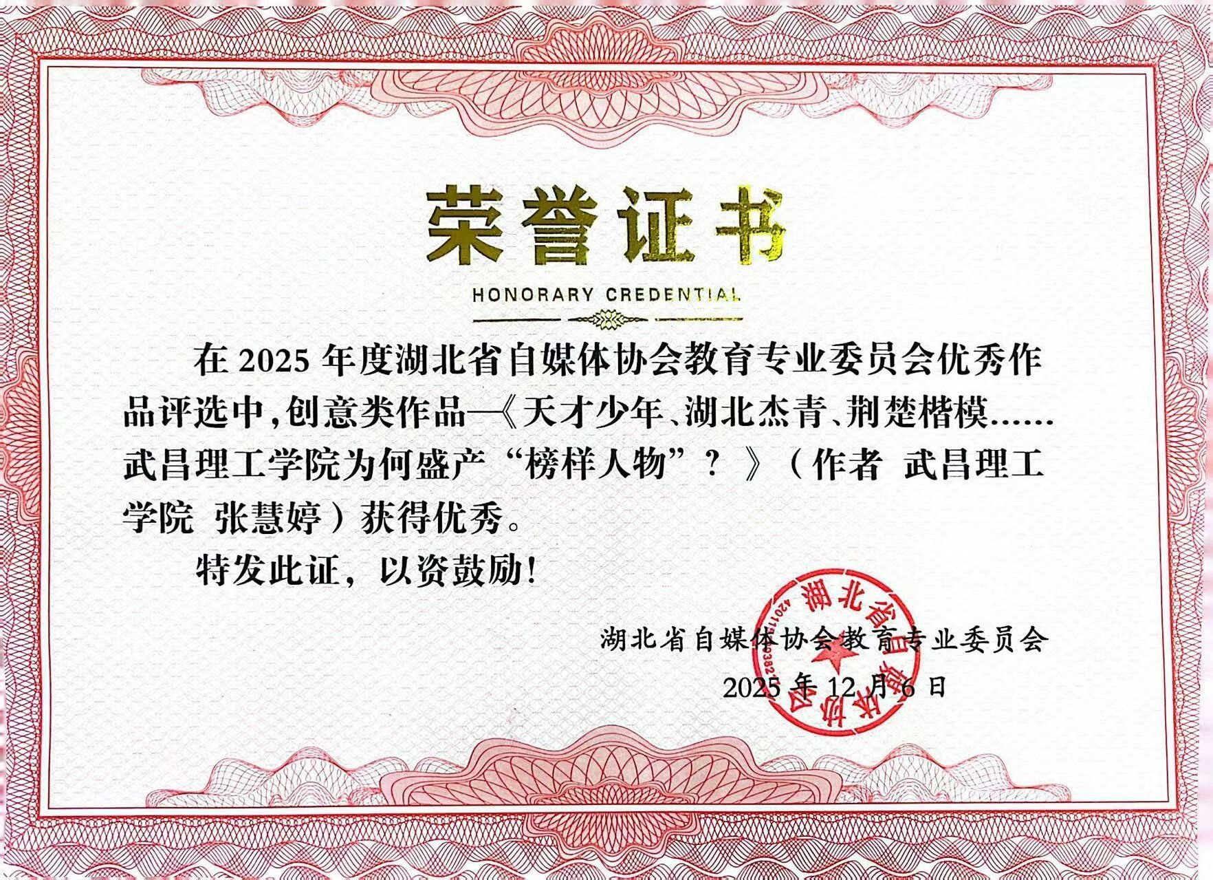 会议期间,教育专委会为年度10个优秀教育自媒体账号及20个优秀作品颁发证书,鼓励创作者持续产出高质量内容。武昌理工学院微信公众号获评全省优秀教育自媒体账号,作品《天才少年、湖北杰青、荆楚楷模......武昌理工学院为何盛产“榜样人物”?》获评优秀作品。