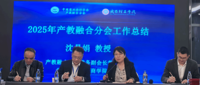 产教融合分会常务副会长兼秘书长、武昌理工学院商学院沈易娟教授对分会2025年度工作进行了总结报告。她从“模式创新与人才培养”“学术研讨引领创新”“关键任务与成果”三个方面系统梳理了本年度分会在课程共建、学术共研、师资共享、实践基地共创等方面取得的实质性进展。分会通过组织系列学术研讨会、企业调研、教学案例开发、学科专业竞赛等活动,有效促进了校企双向奔赴与深度融合。她特别提到,一批聚焦智能财务、数据挖掘、合规科技等前沿领域的合作项目已落地生根,为人才培养提供了真实场景。