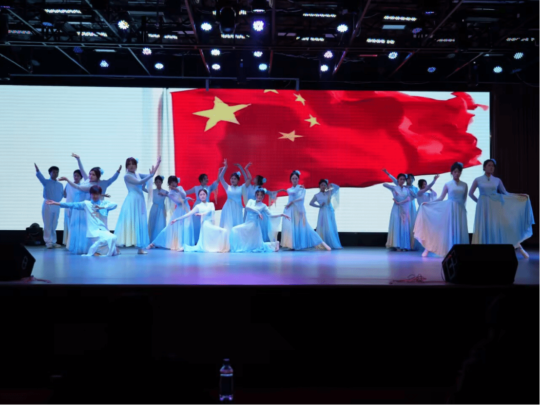 汇演以“铭记历史、笃行时代、展望未来”为主线,分为三大篇章。“往岁燃薪,英魂不灭”聚焦历史回望,智能建造学院的舞台剧《战》再现了先烈峥嵘岁月,健康与护理学院的舞蹈《金陵十三钗》、影视传媒学院的合唱《喀秋莎》深情诠释了战火中的家国情怀。“续火而行,青年笃志”展现精神传承,商学院音乐剧《我有一束光》、创意设计学院情景剧《篇章》通过跨越时空的对话,呈现了青年一代的初心与理想。“明日华章,续写荣光”指向未来担当,文法学院舞蹈《如愿》表达了对美好时代的向往与追求,人工智能学院的演奏合唱《不忘初心》以恢宏气势为整场演出画上圆满句号。