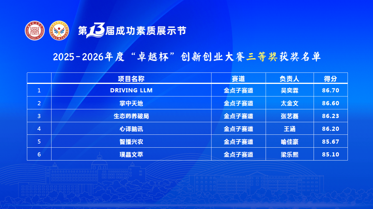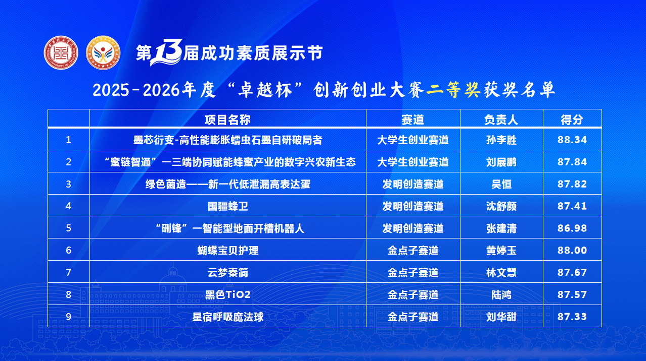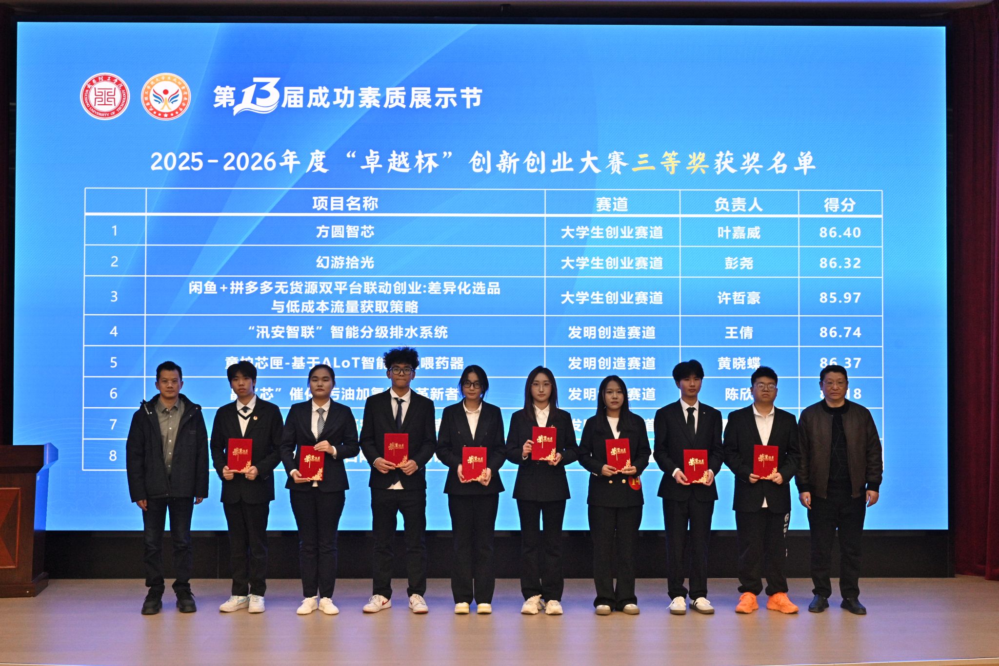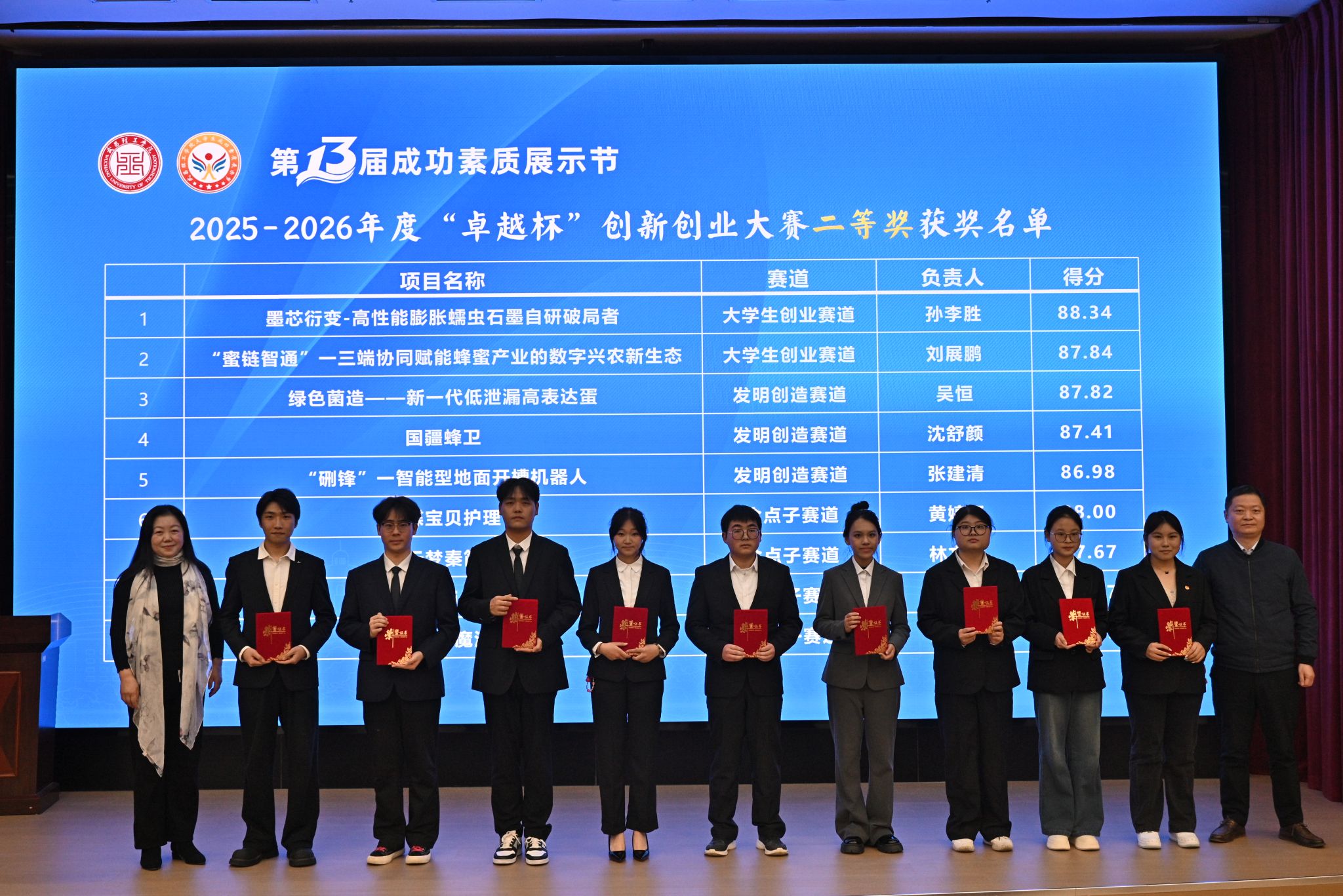 各赛道涌现出一批亮点项目。其中,《智渔领鲜》项目凭借清晰的商业模式与较强的实践潜力,以91.30分荣获大学生创业赛道一等奖。项目负责人黄国洋结合家庭渔业背景,针对传统水产销售痛点,带领团队开发出集智能监测、品质溯源与电商销售于一体的解决方案。此外,钟华吉团队的《慧轴衡方-基于ESP32三轴单点自平衡》项目获得发明创造赛道一等奖;丁婷团队的《智诊伴行》项目、龚欣然团队的《大地问诊》获得金点子赛道一等奖。