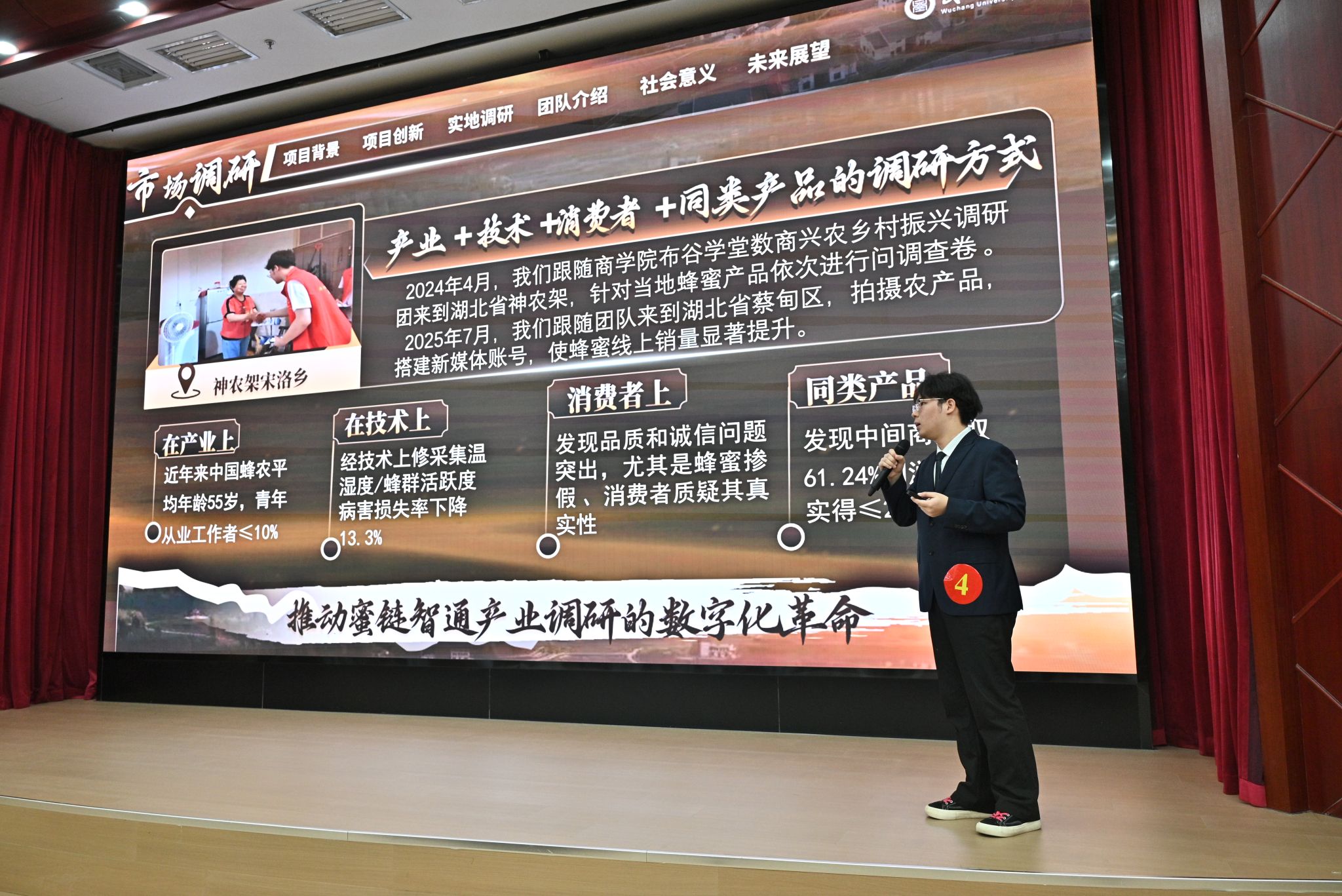 决赛现场,各团队通过PPT讲解、实物展示、视频演示等形式,系统阐述项目创意、技术核心、市场分析及未来规划。在三个半小时的展示与答辩中,评委精准提问、细致点评,既指出项目不足,也给出优化建议,使赛事成为一堂生动的创新创业实践课。