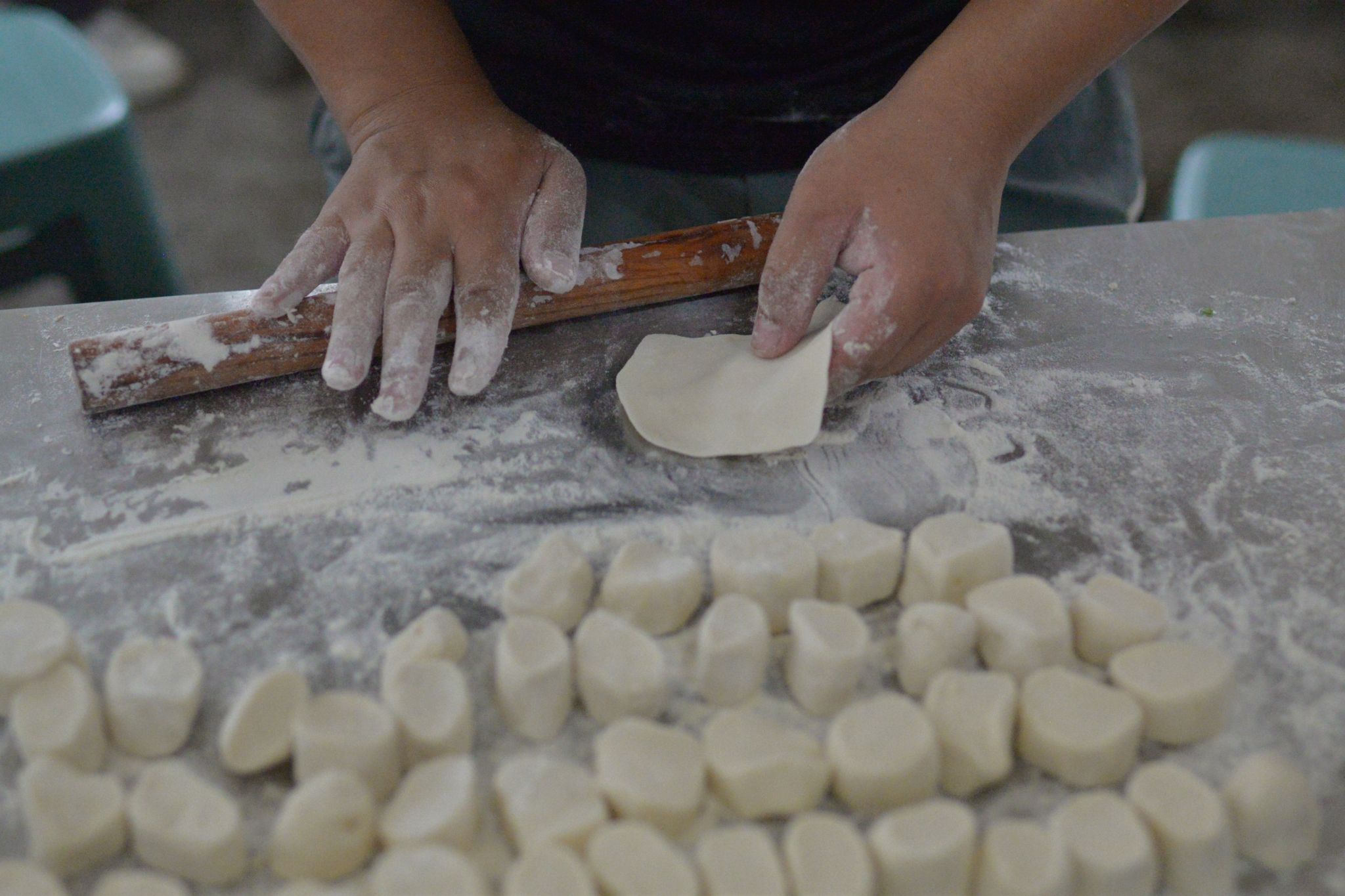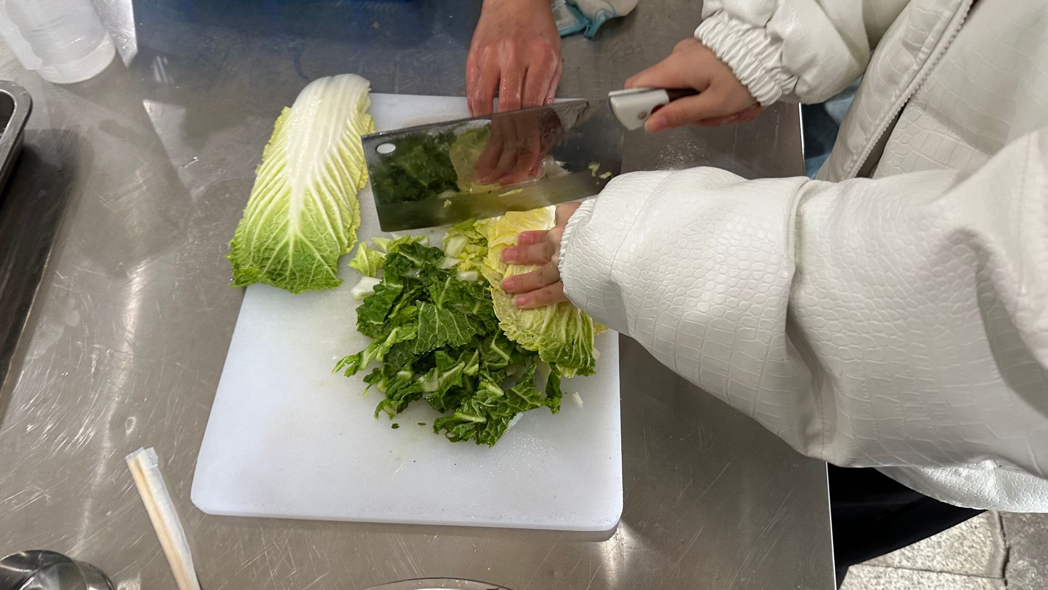 除了农事体验,基地还开设了“餐厅帮厨”等生活技能课程,在“我的厨房”活动中,学生们体验了和面、揉团、擀皮、包馅的全过程,亲手制作出热气腾腾的饺子。在教官的指导下,大家掌握了火候控制与调味技巧,学会了日常饮食的基本烹饪方法。洗菜、切菜、炒菜,每一道工序都凝聚着专注与耐心,也让学生深刻体会到劳动赋予生活的温度与意义。“以前都是吃现成的,今天自己动手做了才知道,原来最简单的烹饪也蕴含着学问。”健康与护理学院学生袁诗雅吃着刚出锅的饺子,笑得灿烂,“‘自己动手,丰衣足食’,这份满足感外卖可给不了。”