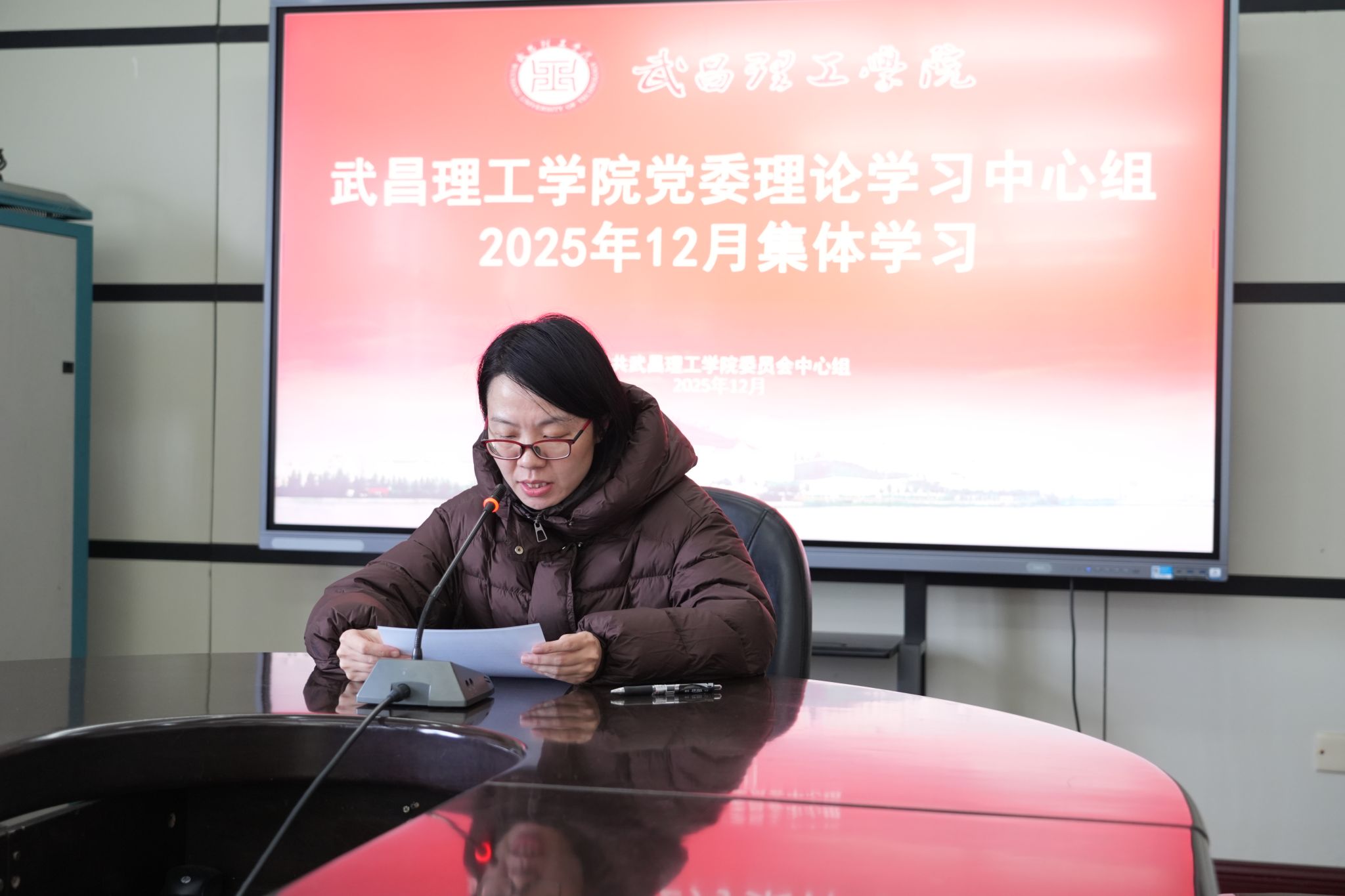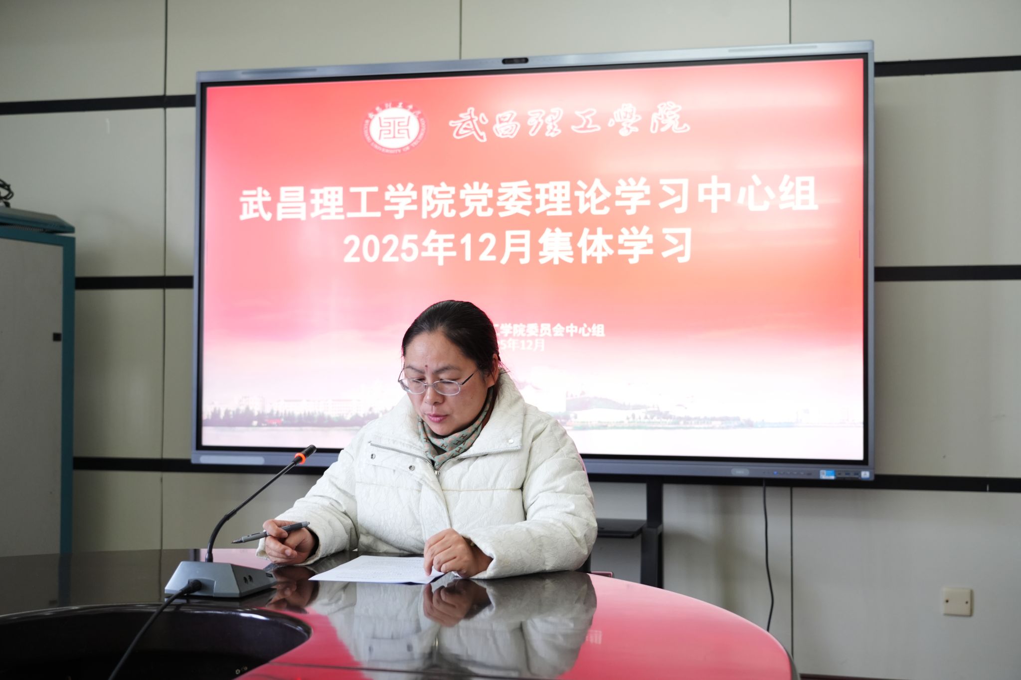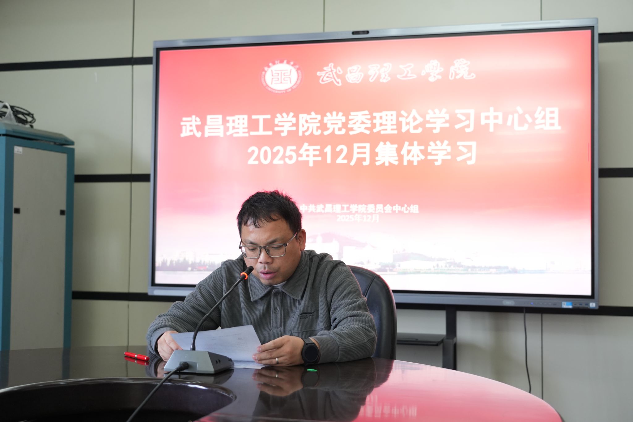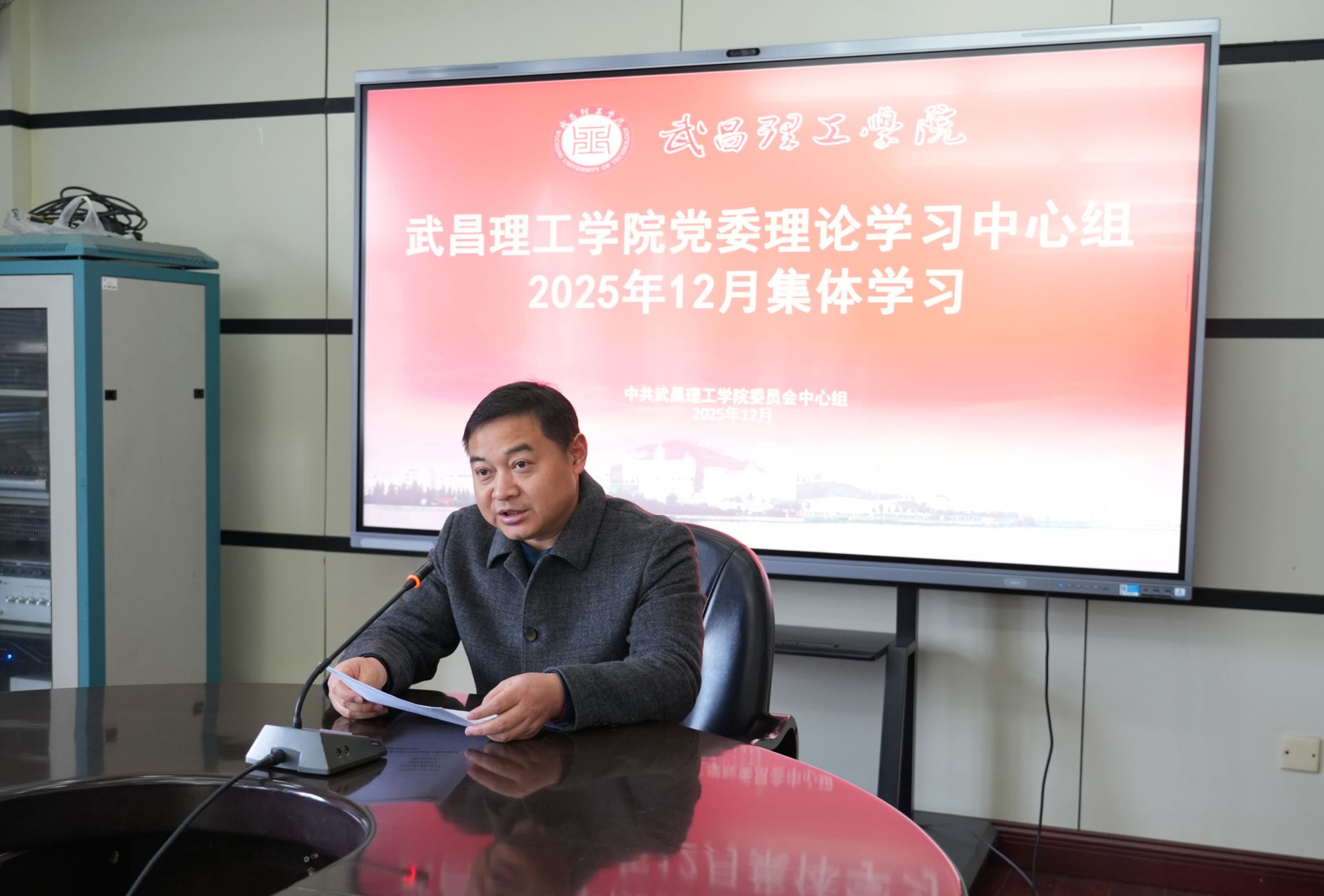 中南在线12月18日消息(记者 祝琳 报道)12月17日上午,武昌理工学院党委理论学习中心组举行12月集体学习,深入学习领会习近平总书记近期重要讲话精神,深入把握省委十二届十一次全会和全省高校工作会议的核心要义。校党委书记高建勋在主持学习时强调,省委十二届十一次全会是在全省上下深入学习贯彻党的二十届四中全会和习近平总书记考察湖北重要讲话精神,全力收官“十四五”、奋进“十五五”的关键时期召开的一次重要会议。全校要深入学习贯彻党的二十届四中全会精神和省委十二届十一次全会精神,全面落实全省高校工作会议部署和省委、省政府工作要求,紧密结合学校实际,切实把各项会议精神转化为推动学校事业发展的具体行动。
