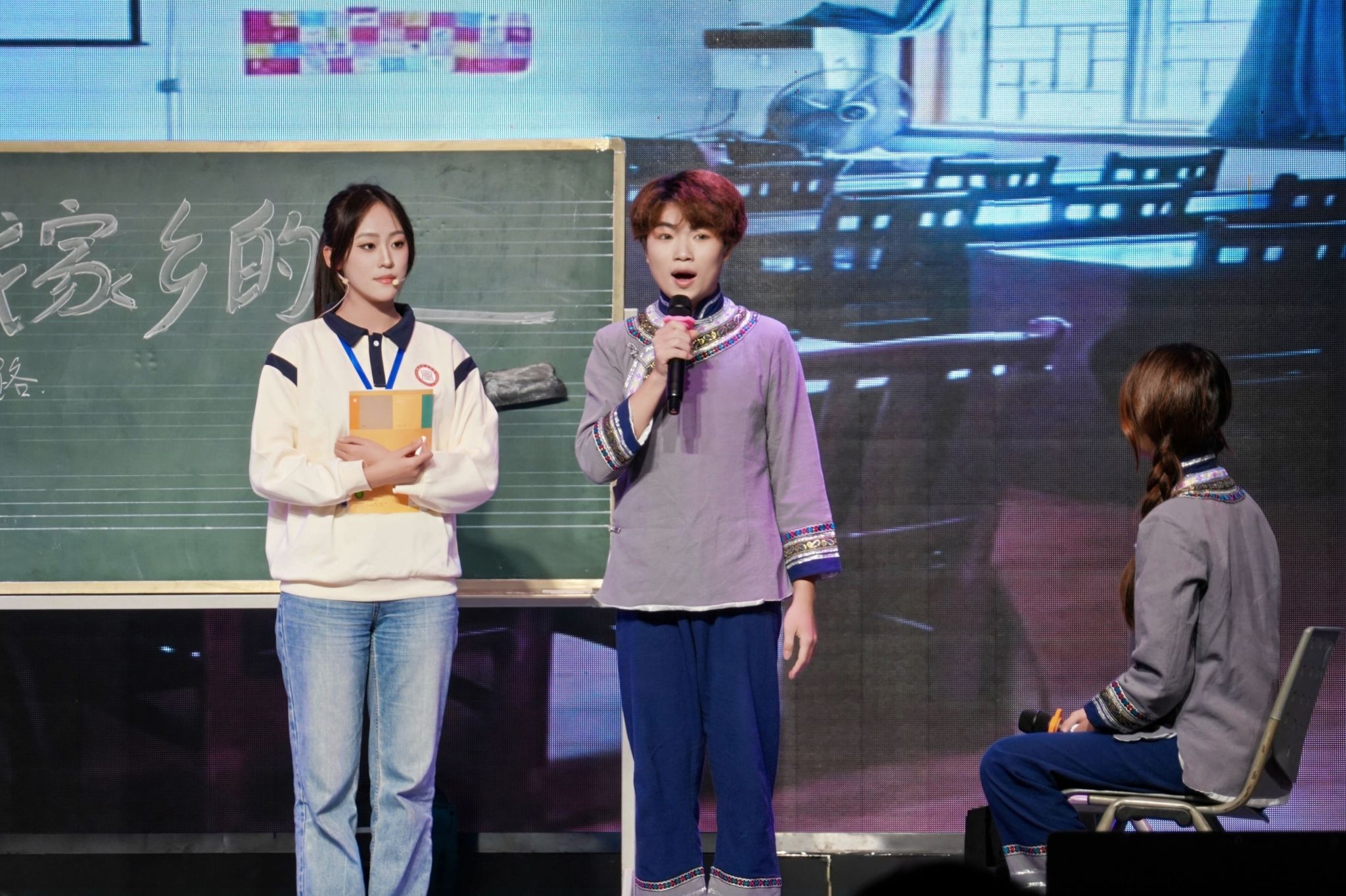表彰过后,情景剧《微光》生动再现了支教团队助力乡村教育、推广农产品的暖心故事。创意设计学院冯浩作为优秀个人分享他在孝感陡岗镇开展美育支教的经历,讲述了这段经历让他深刻理解了美育的责任与意义,也更加坚定了用设计力量赋能乡村教育的决心。
