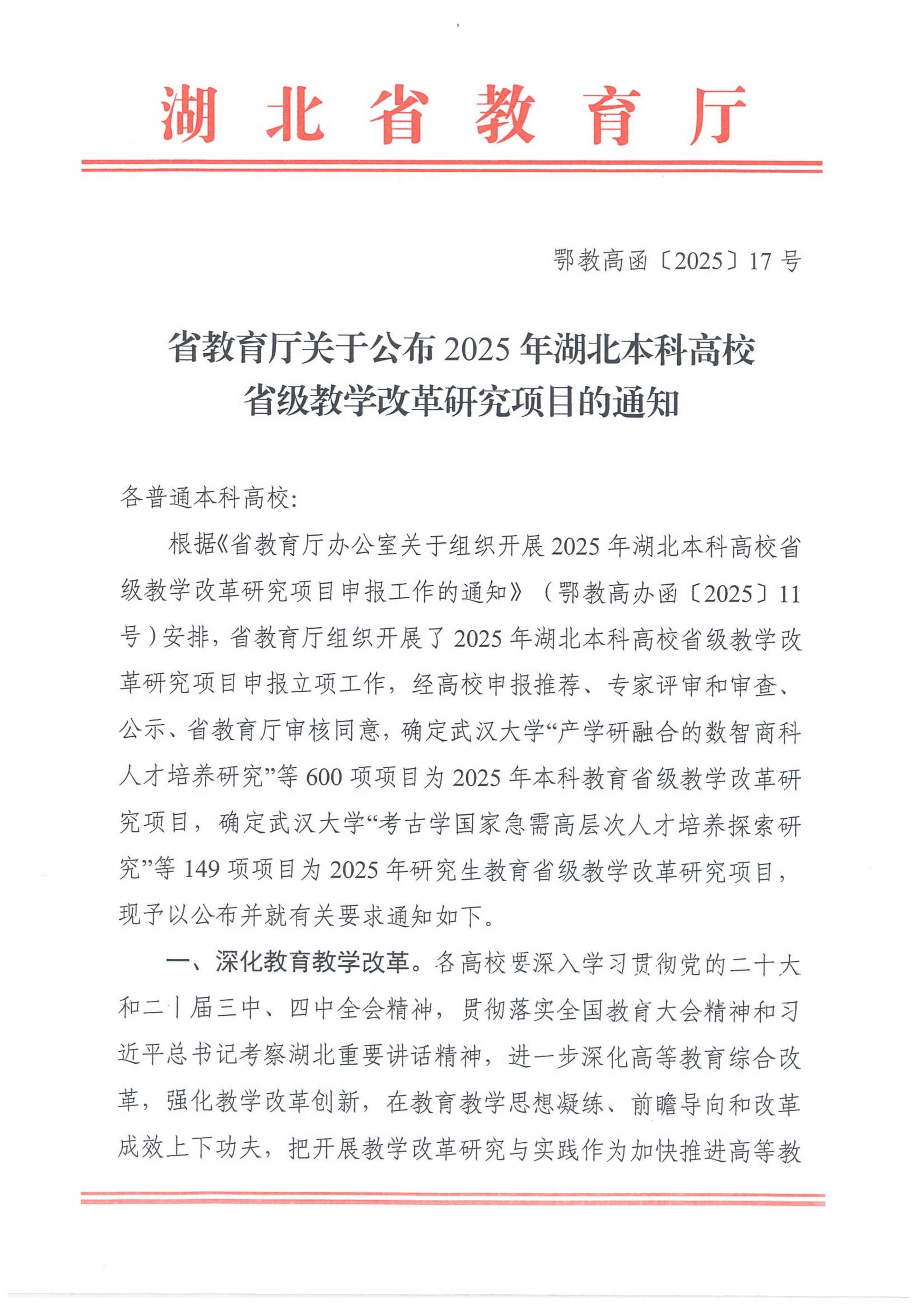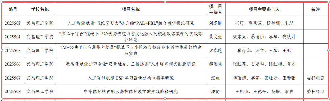 中南在线1月4日消息(记者 周黎 特约通讯员 刘嘉伟 报道)近日,湖北省教育厅正式公布《省教育厅关于公布2025年湖北本科高校省级教学改革研究项目的通知》。武昌理工学院申报的6个教学改革研究项目经评审成功获批立项。