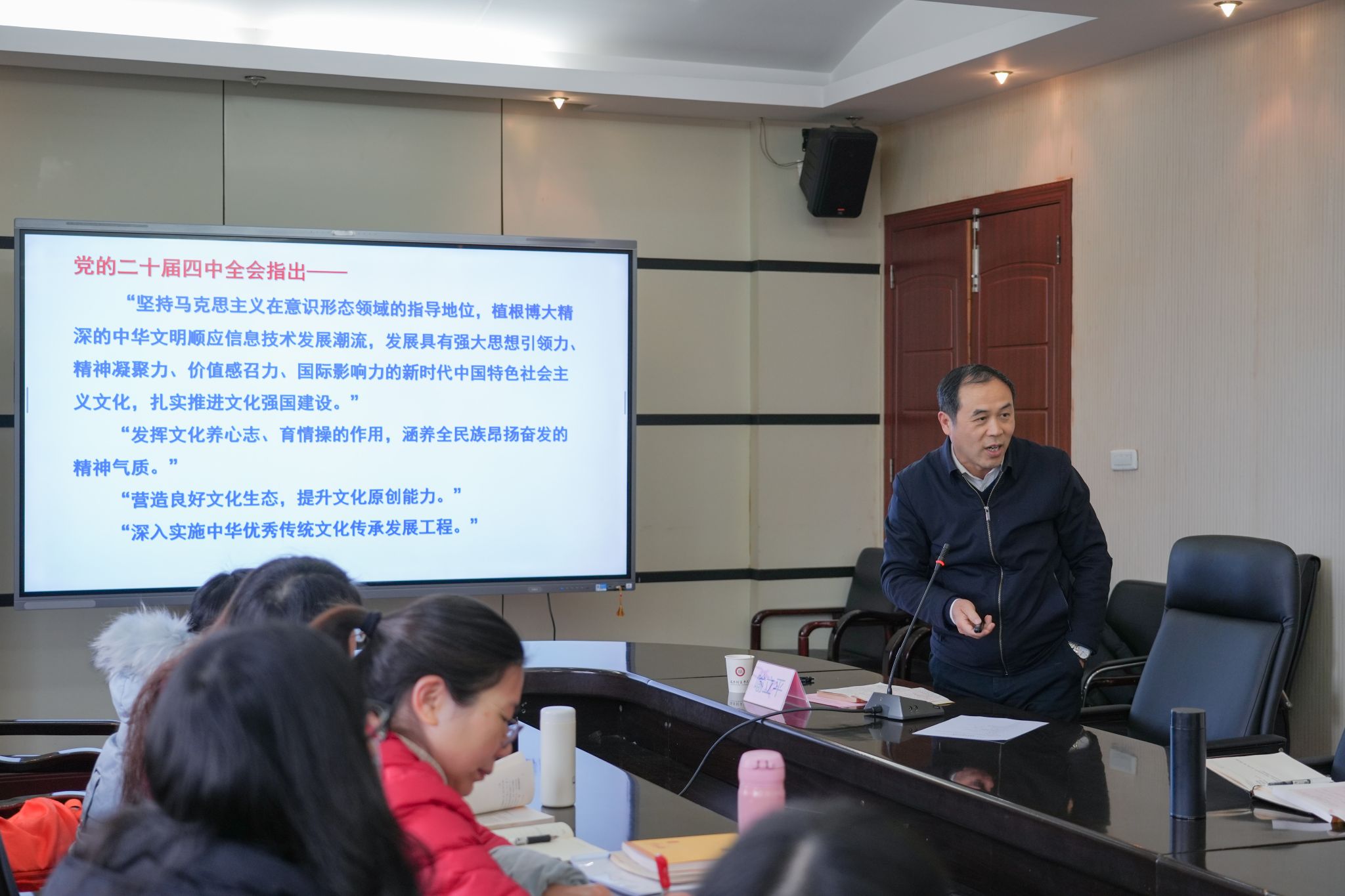 最后,彭贤则院长作开班式总结。他指出,本次开班式既是思想动员,也是行动启航,高建勋书记的讲话为读书班开展指明方向,喻立平副主任委员的辅导为经典学习打下坚实基础。针对后续学习,彭贤则院长提出三点要求:一是锚定学习目标,抓牢“学什么”,严格按照计划学习马克思主义与传统文化经典,确保学深学透;二是创新学习方式,搞活“怎么学”,落实“自主学习+集中研讨+专题辅导”模式,每月固定开展集中交流,鼓励各学习小组围绕“经典融入思政课堂”等主题开展案例分享;三是强化成效导向,落地“学用结合”,将学习成果与教学改革、科研攻关挂钩,学院将通过考勤管理、考核奖励等机制,确保学习不走过场。他强调,希望全体教师以读书班为新起点,努力成长为政治强、情怀深、思维新、视野广、自律严、人格正的优秀思政课教师,为学校高质量发展、为培养担当民族复兴大任的时代新人贡献力量。
