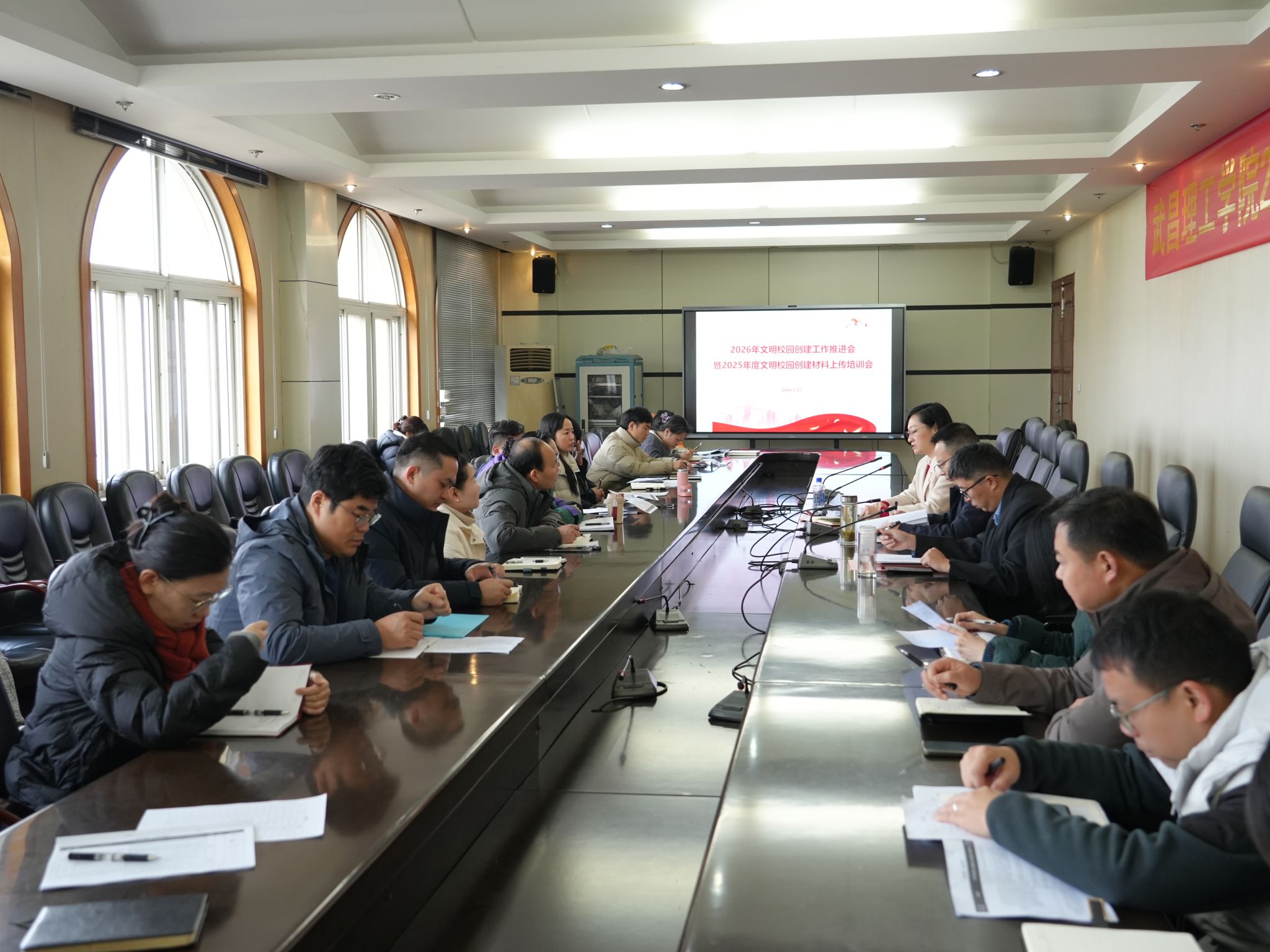 中南在线1月27日消息(记者 祝琳 报道)1月27日上午,武昌理工学院召开2026年文明校园创建工作推进会暨2025年度文明校园创建材料上传培训会,校党委书记高建勋出席会议并讲话,各学院、处室馆所负责人及填报人员参加会议。会议由校党委副书记林娟主持。