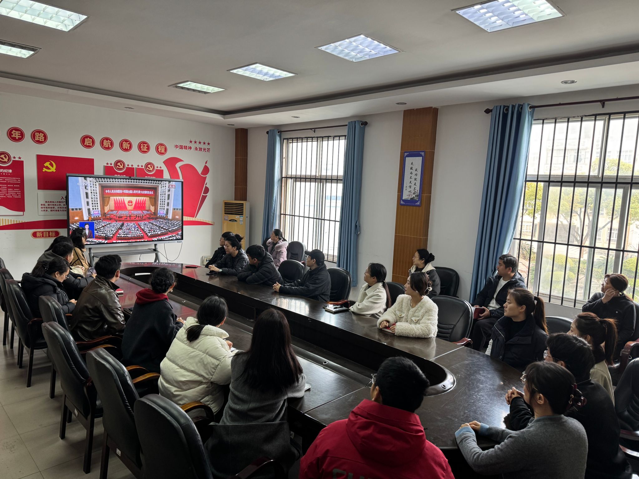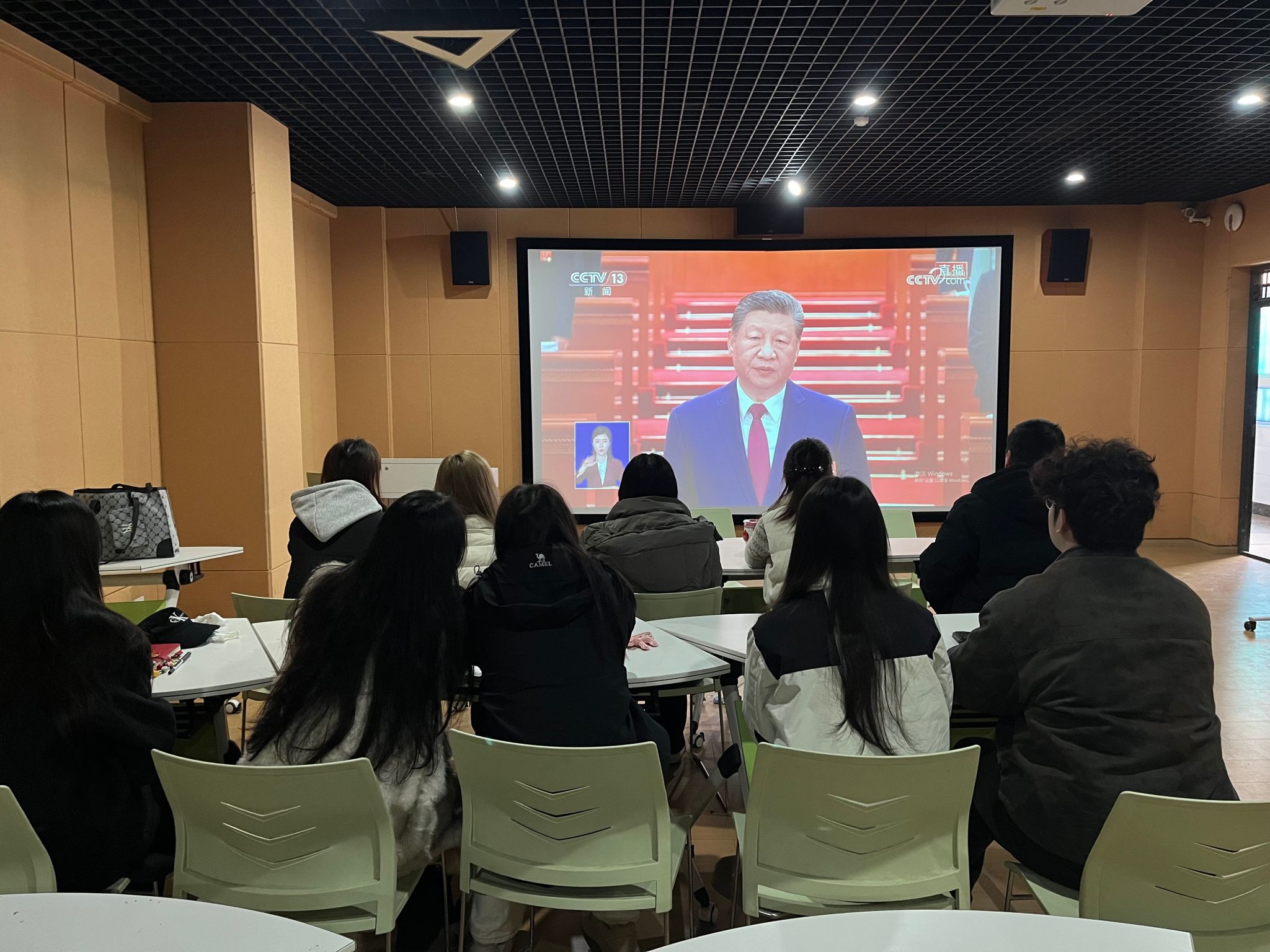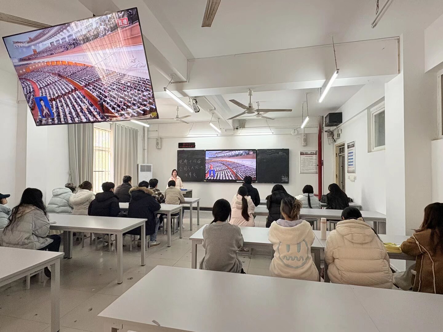 师生观看十四届全国人大四次会议开幕会 图片来源:各单位供图