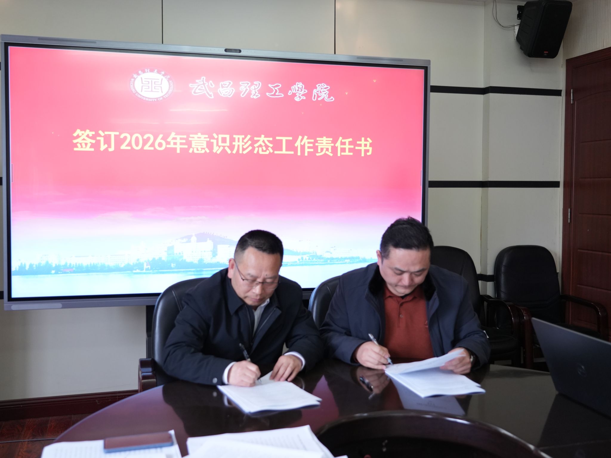 校党委书记高建勋代表学校党委与各党总支书记、直属党支部书记签订了《2026年意识形态工作责任书》,进一步压紧压实意识形态工作主体责任。