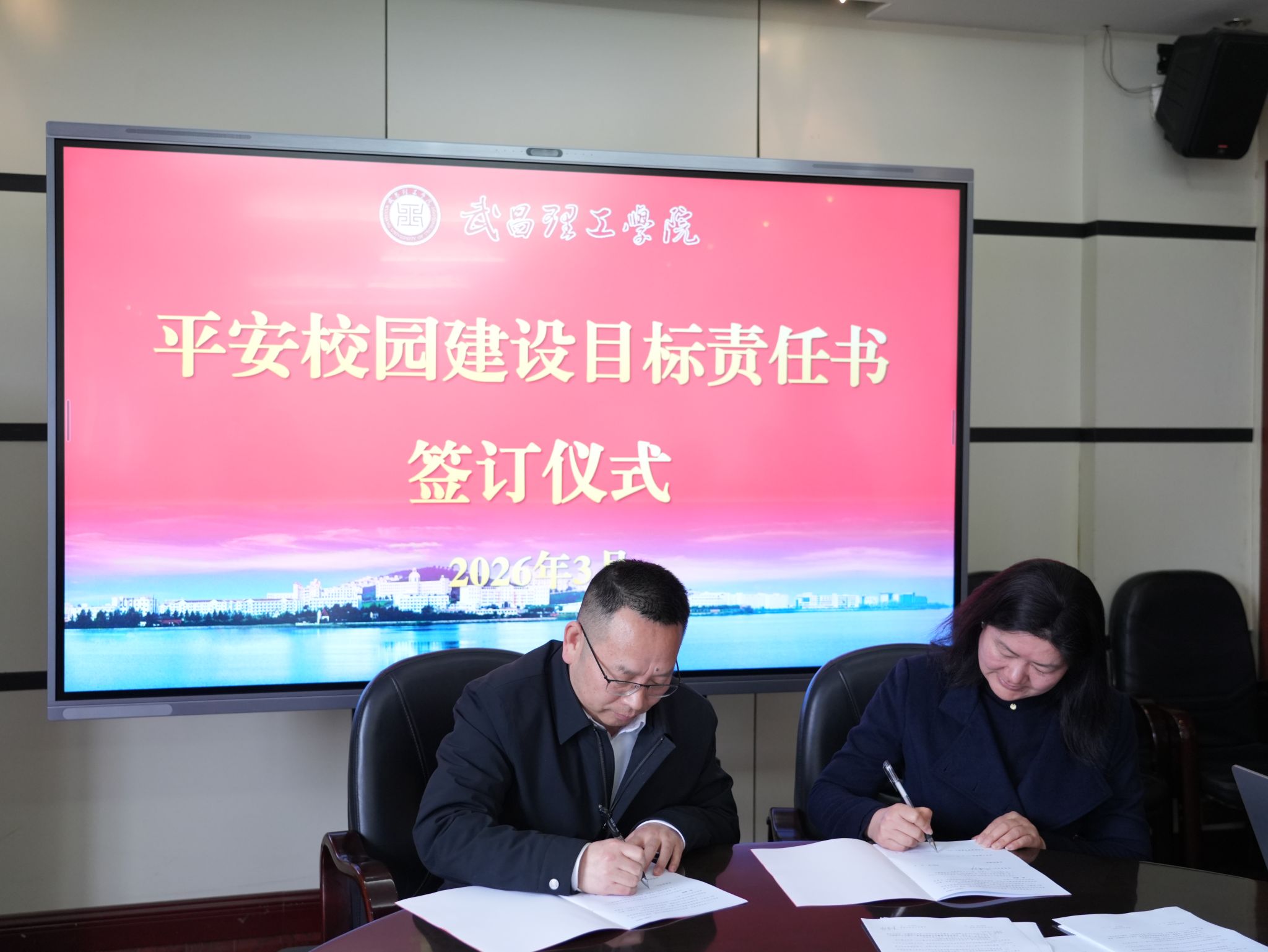 中南在线3月7日消息 (记者 祝琳 报道)为全面筑牢校园安全防线,压实安全工作责任,切实保障全体师生生命财产安全,维护校园和谐稳定,3月6日上午,武昌理工学院召开2026年度平安校园建设部署会暨目标管理责任书签订仪式。校党委书记高建勋出席会议,校党委常委、各学院党总支书记及各职能部门负责人参加会议。会议由校党委副书记、分管安全工作校领导林娟主持。