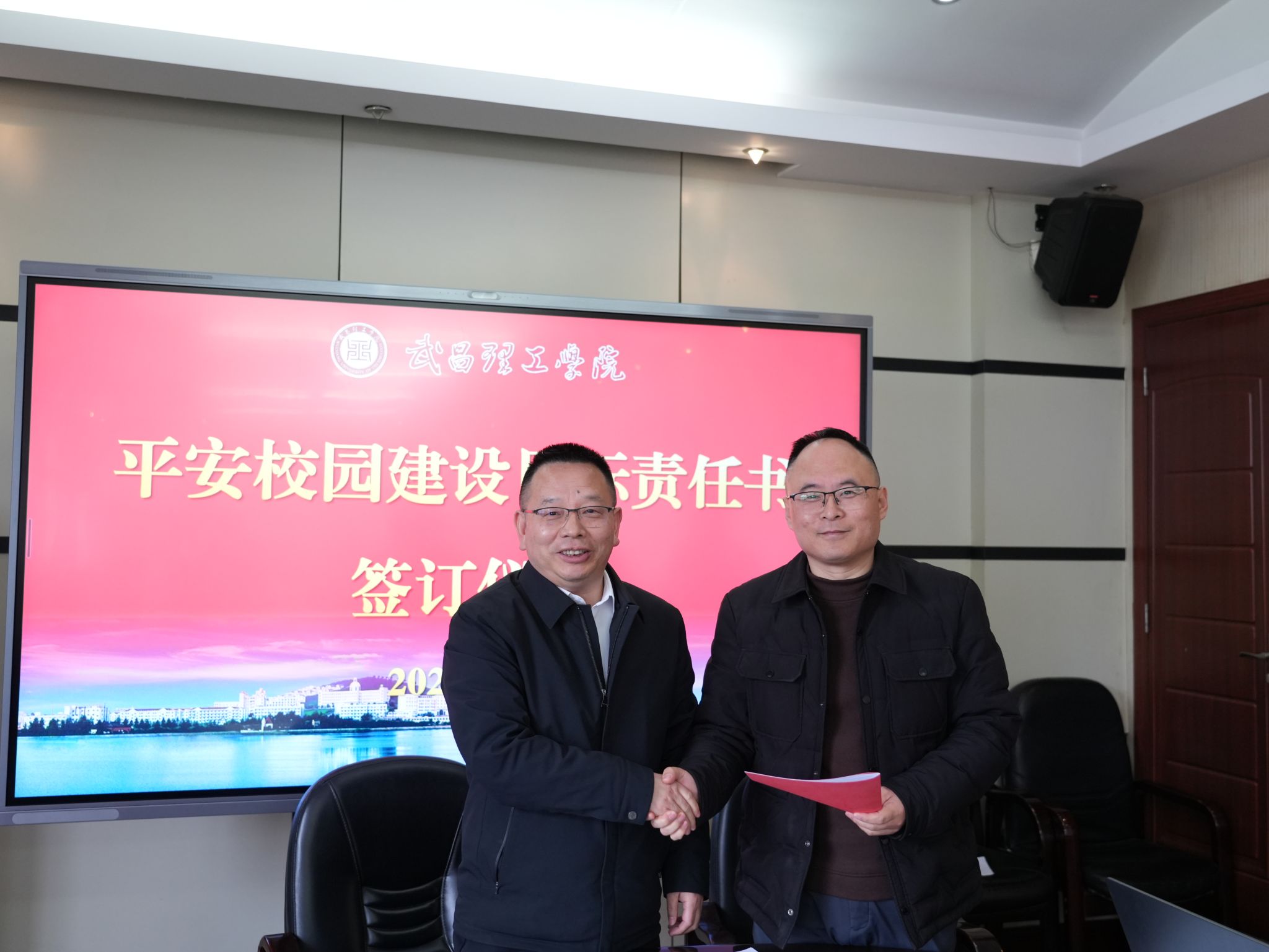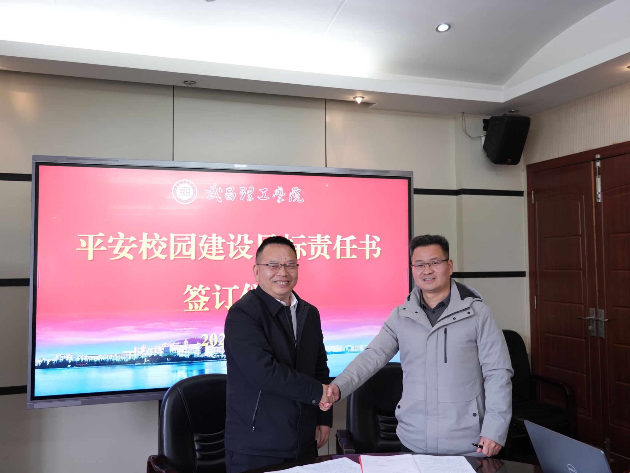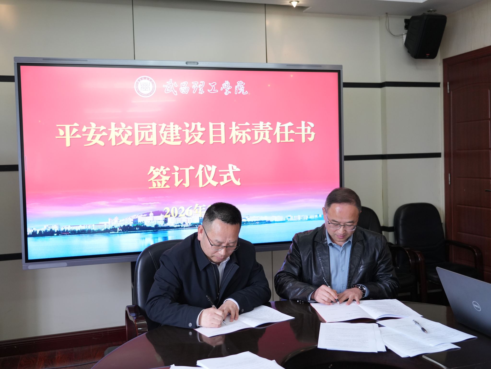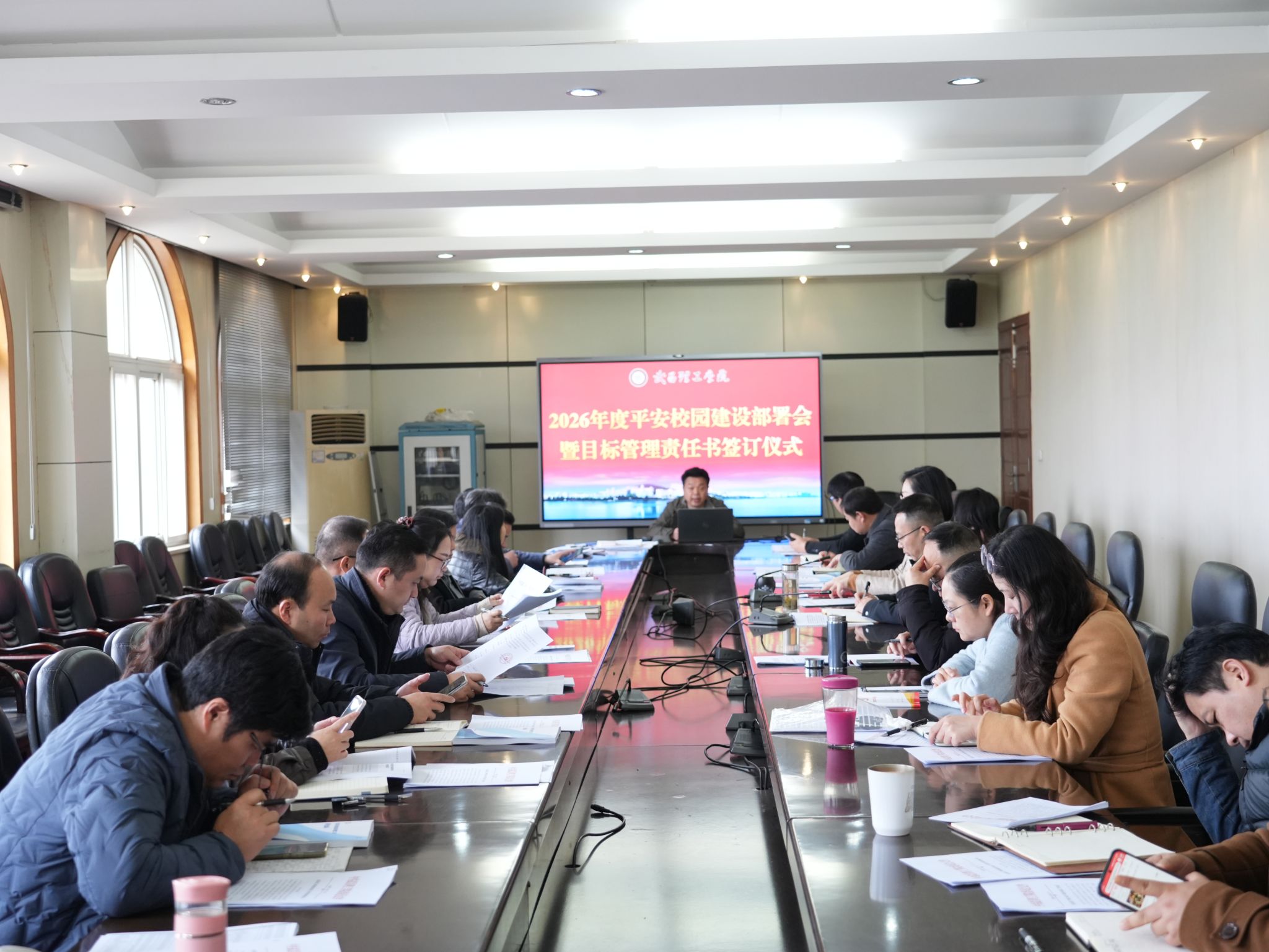 会议最后,举行了目标管理责任书签订仪式。校党委书记高建勋代表学校,与各单位负责人逐一签订了2026年度平安校园建设目标管理责任书。责任书明确了各单位安全工作的具体职责、工作目标和考核要求,进一步压实了安全工作责任,形成了“一级抓一级、层层抓落实”的安全管理格局,为新学期平安校园建设工作的有序开展奠定了坚实基础。