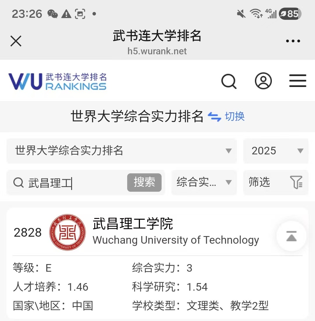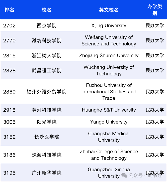 该榜单具有严格的入围门槛和评价体系,参评院校须满足近5年发表的论文被其他大学引用的次数位于世界大学前4000名的本科大学。评价指标体系涵盖人才培养、科学研究等多个维度,且对所有参评院校采用同一标准。本次共有3436所世界高校被评价,中国海峡两岸729所大学上榜,其中10所民办大学、5所独立学院上榜。这是中国民办高校首次成规模进入世界大学排名体系,武昌理工学院凭借扎实的办学实力成功入围,位居全球大学第2828名,是湖北省唯一上榜的民办高校。