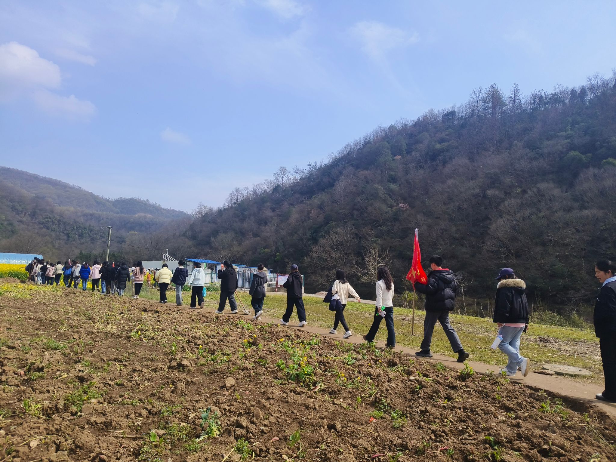 中南在线3月23日消息(记者 周黎 大通社记者 袁婷 报道 钟纤纤 黄文姬 摄影 )“坑不能挖太深,土要轻轻压实——你看,这样花苗才能稳稳扎根!”3月22日,湖北省京山市绿林山武昌理工学院劳动教育实践基地内,1000余名学子撸起袖子、俯身弯腰,一场别开生面的劳动教育实践课正热火朝天地开展,翻地、除草、捡柴、种花苗、做饭等各项劳动任务有序推进,田间地头满是青春奋斗的身影。