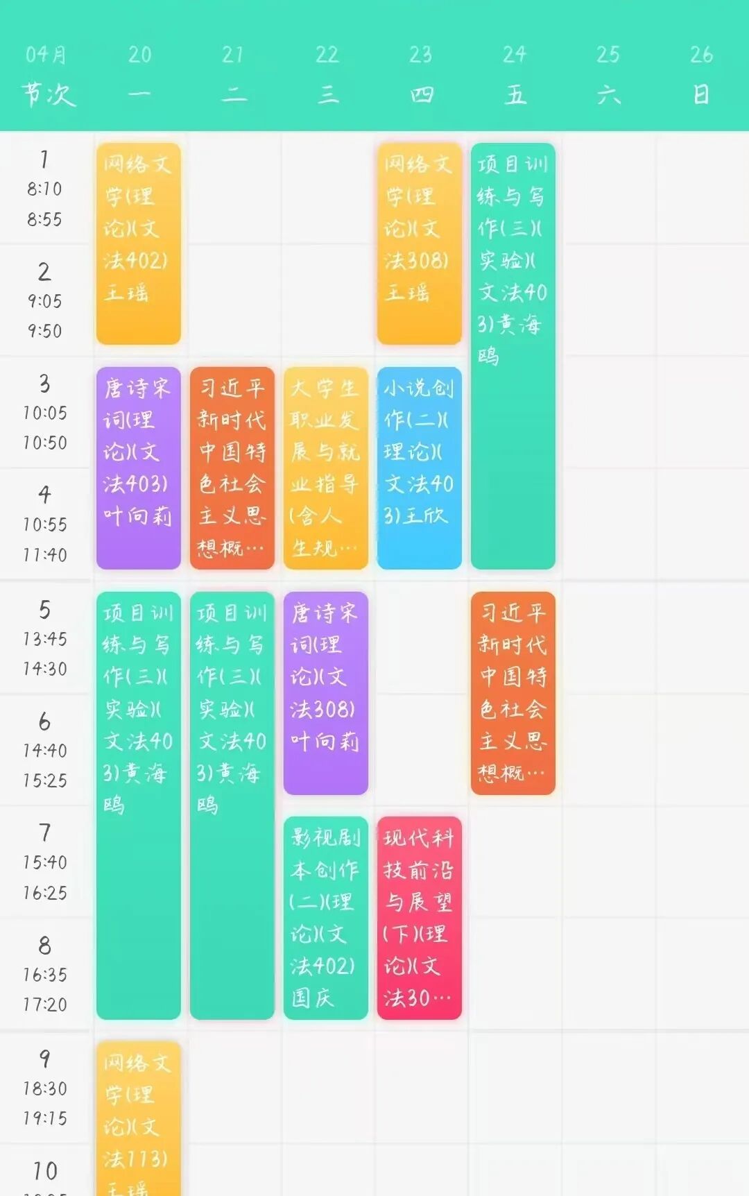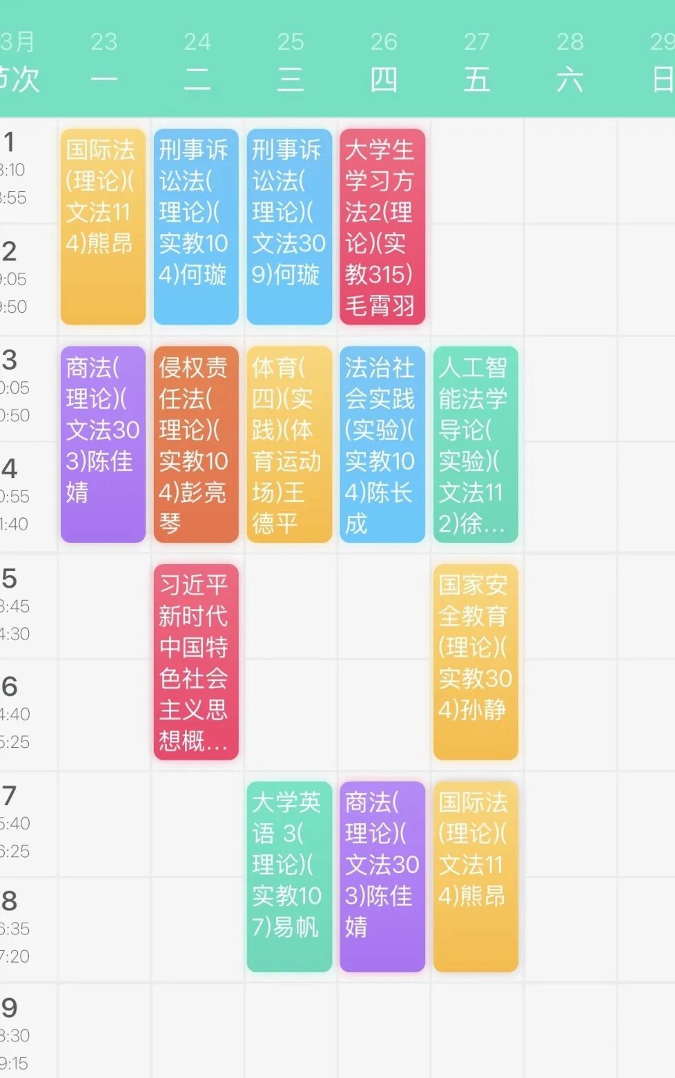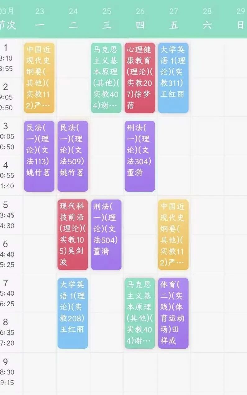 文法学院法学专业陶昭阳同学分享:“我的课表就是‘早八人’的真实写照,周一到周五几乎天天有早八。现在已经完全适应了这个节奏,早八也成了我新学期的‘起床闹钟’,用最饱满的状态开启每一天~”